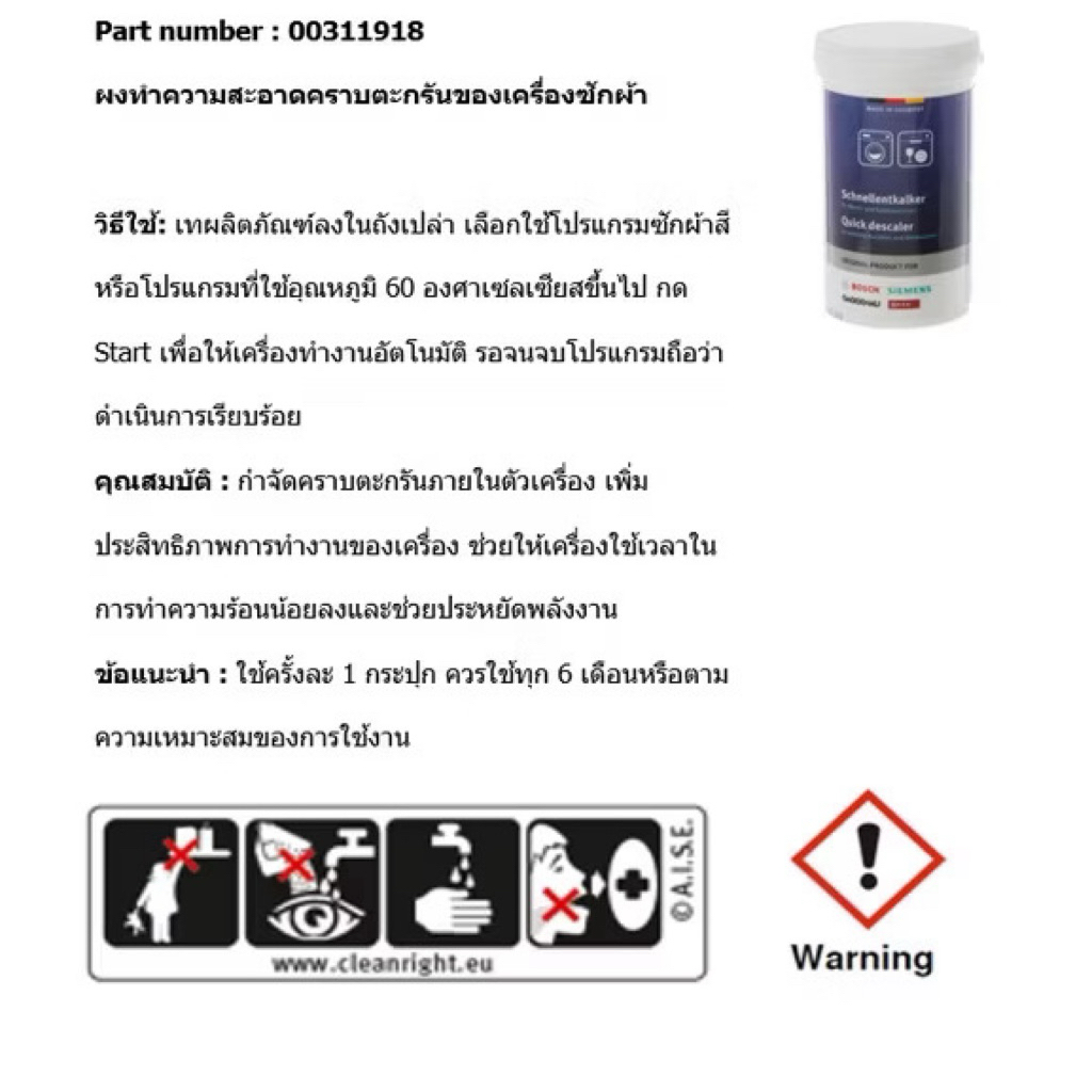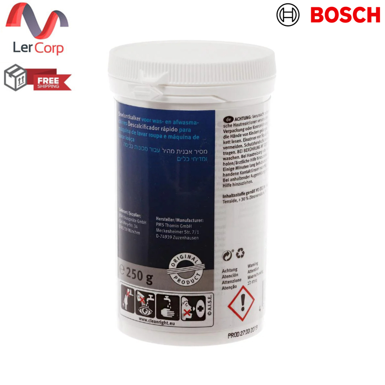 (Bosch) ผงทำความสะอาดคราบตะกรัน เครื่องซักผ้าฝาหน้า และ เครื่องล้างจาน รุ่น 00312330