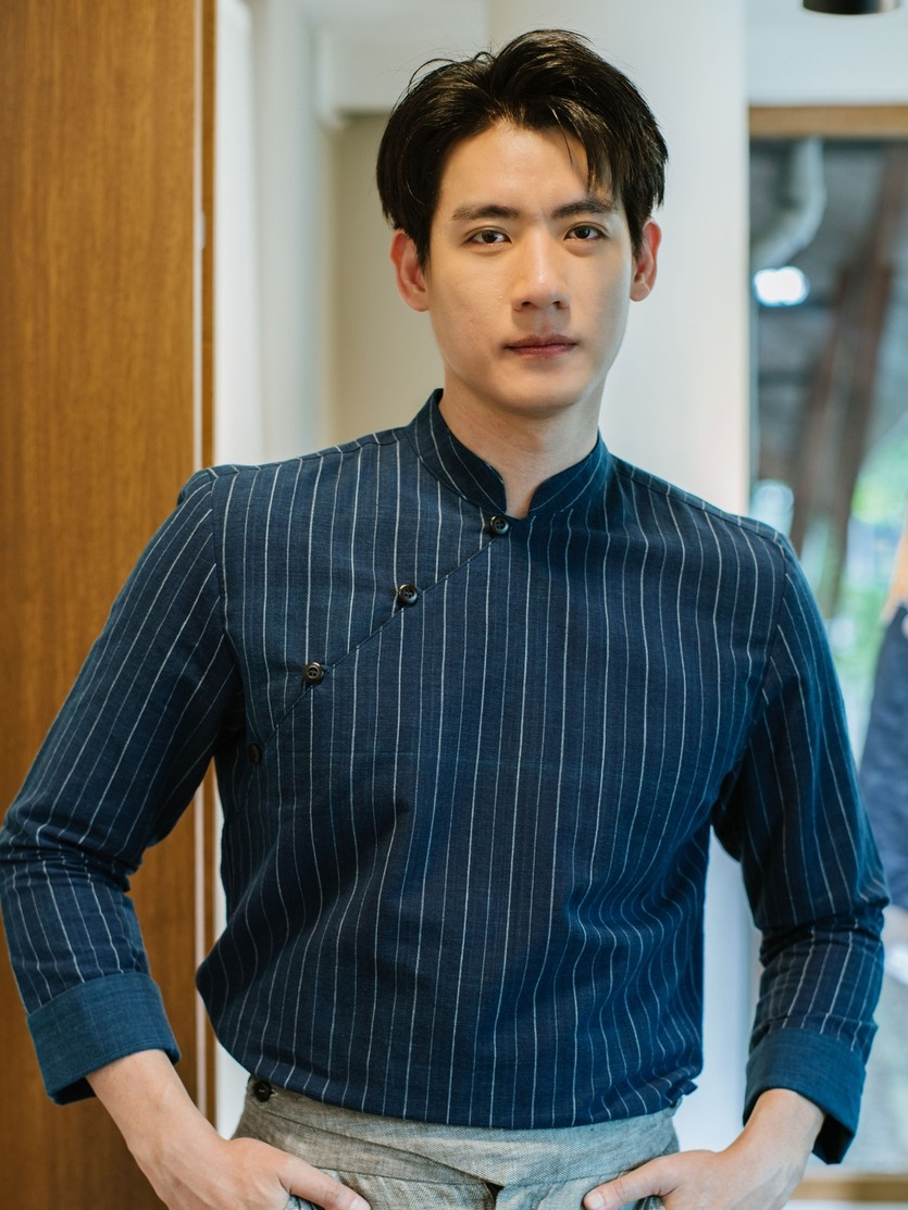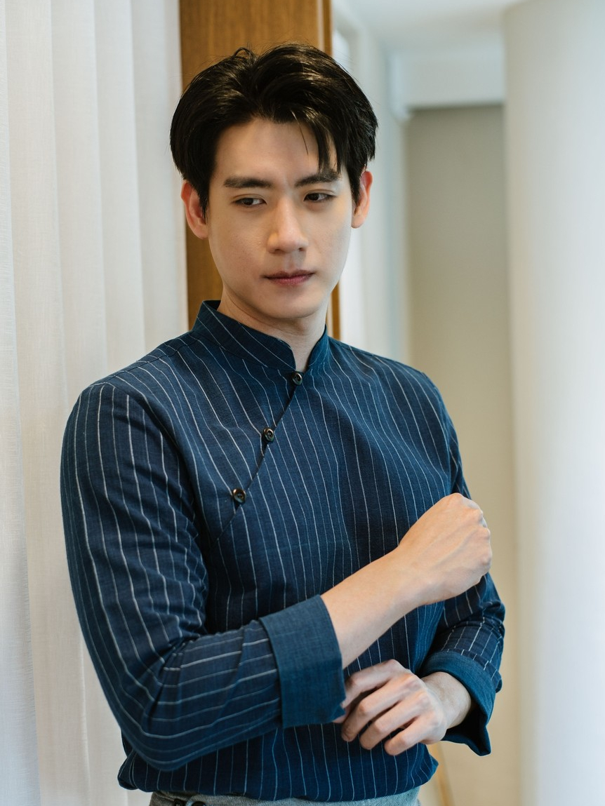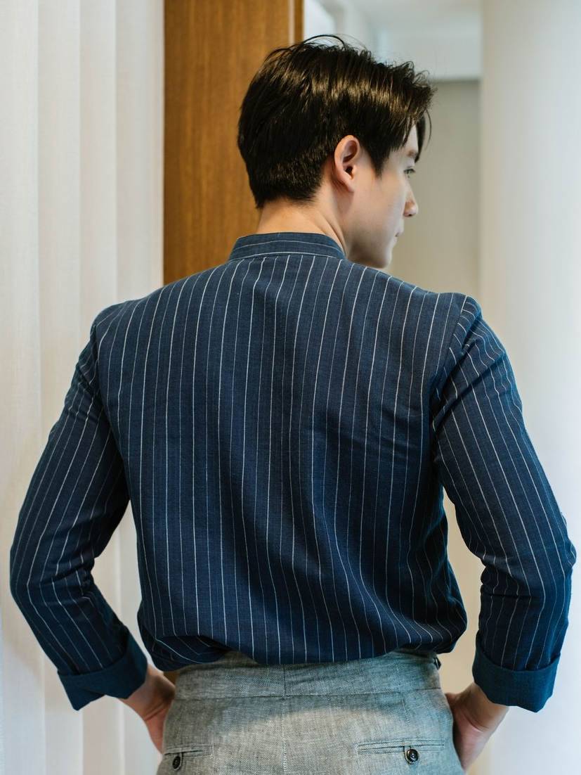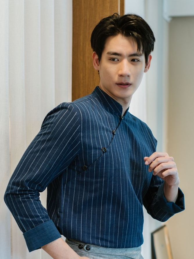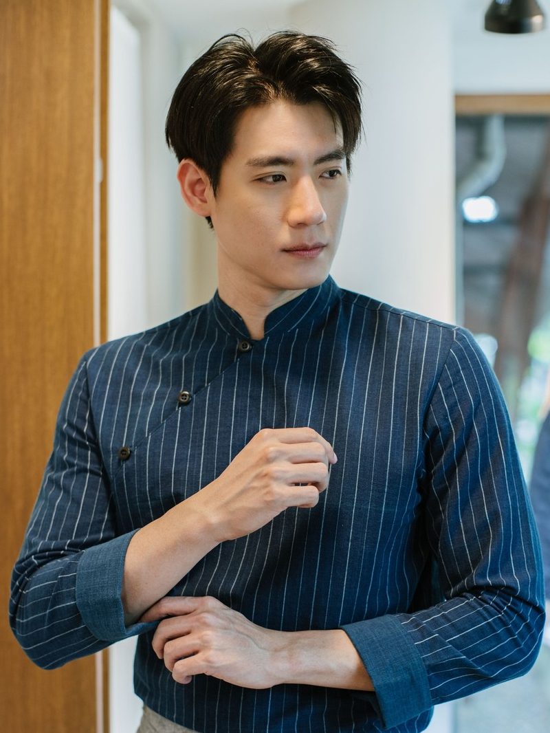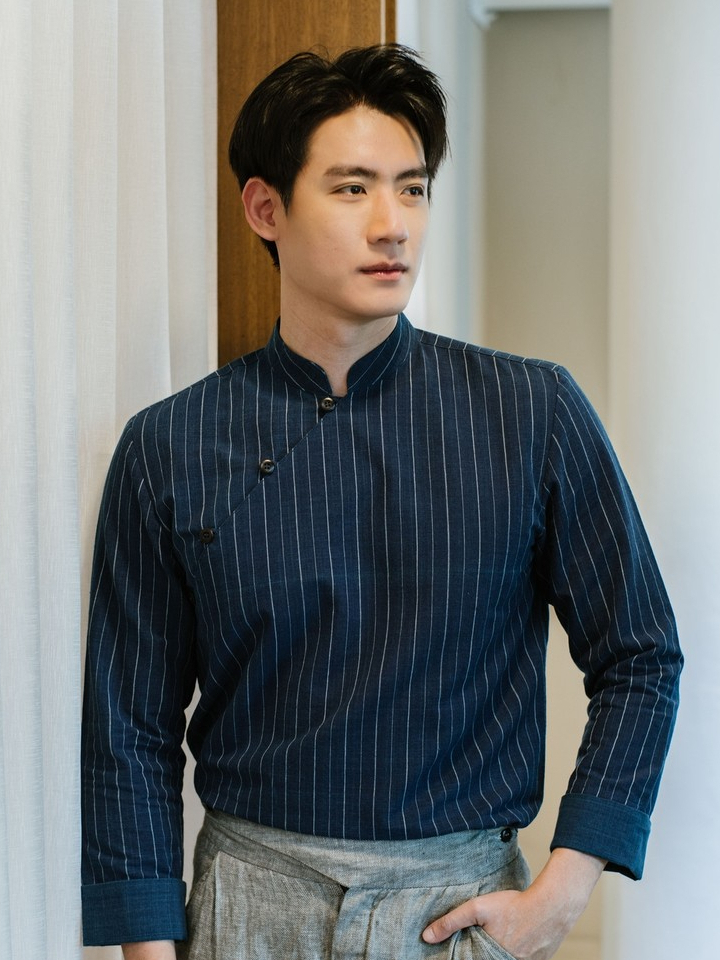 (JUN) Hanfu Shirt เสื้อเชิ้ตผู้ชายฮั่นฝู สีกรมลายทาง