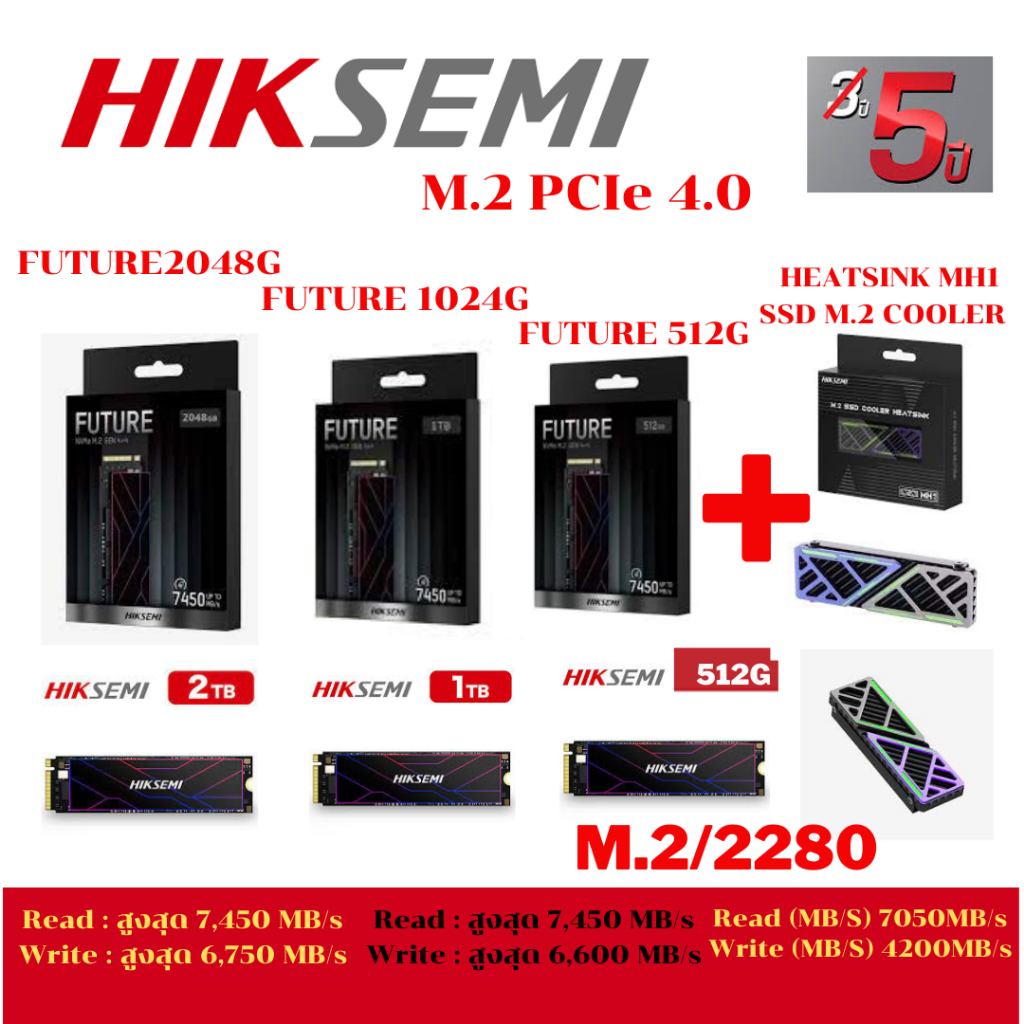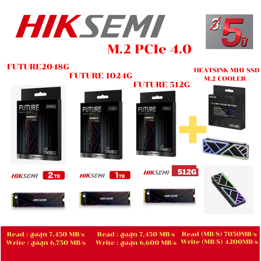 (SSD-FUTURE 1024G) PS5 HIKSEMI Future 512GB,1TB,2TB PCIe 4.0 NVMe M.2 SSD (Up to 7450 MB/s)