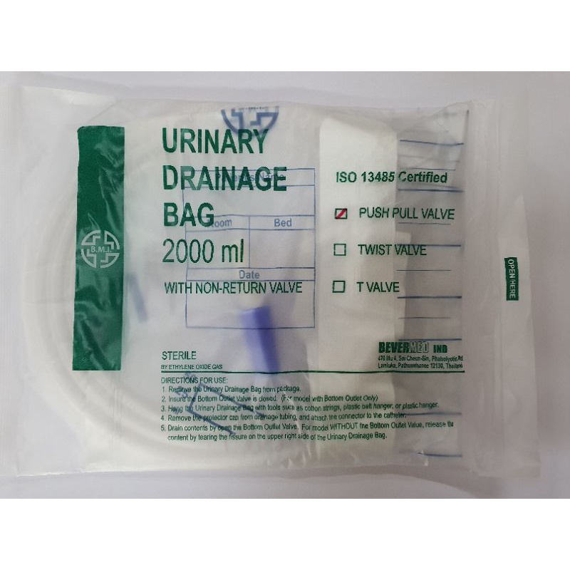 (Urine bag) ถุงปัสสาวะ Urinary Drainage Bag 2000ml. (ขายยกแพ็ค 10ชิ้น)
