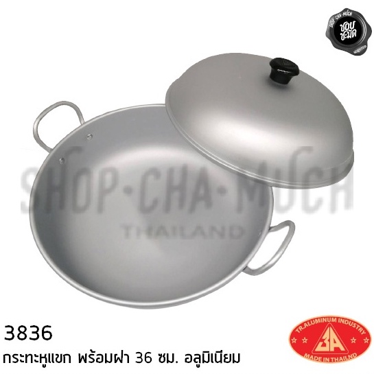 กระทะหูแขก 2 หู มีฝา อลูมิเนียม ไม่เป็นสนิม 3A 36/40/44/48 ซม. - 1 ใบ