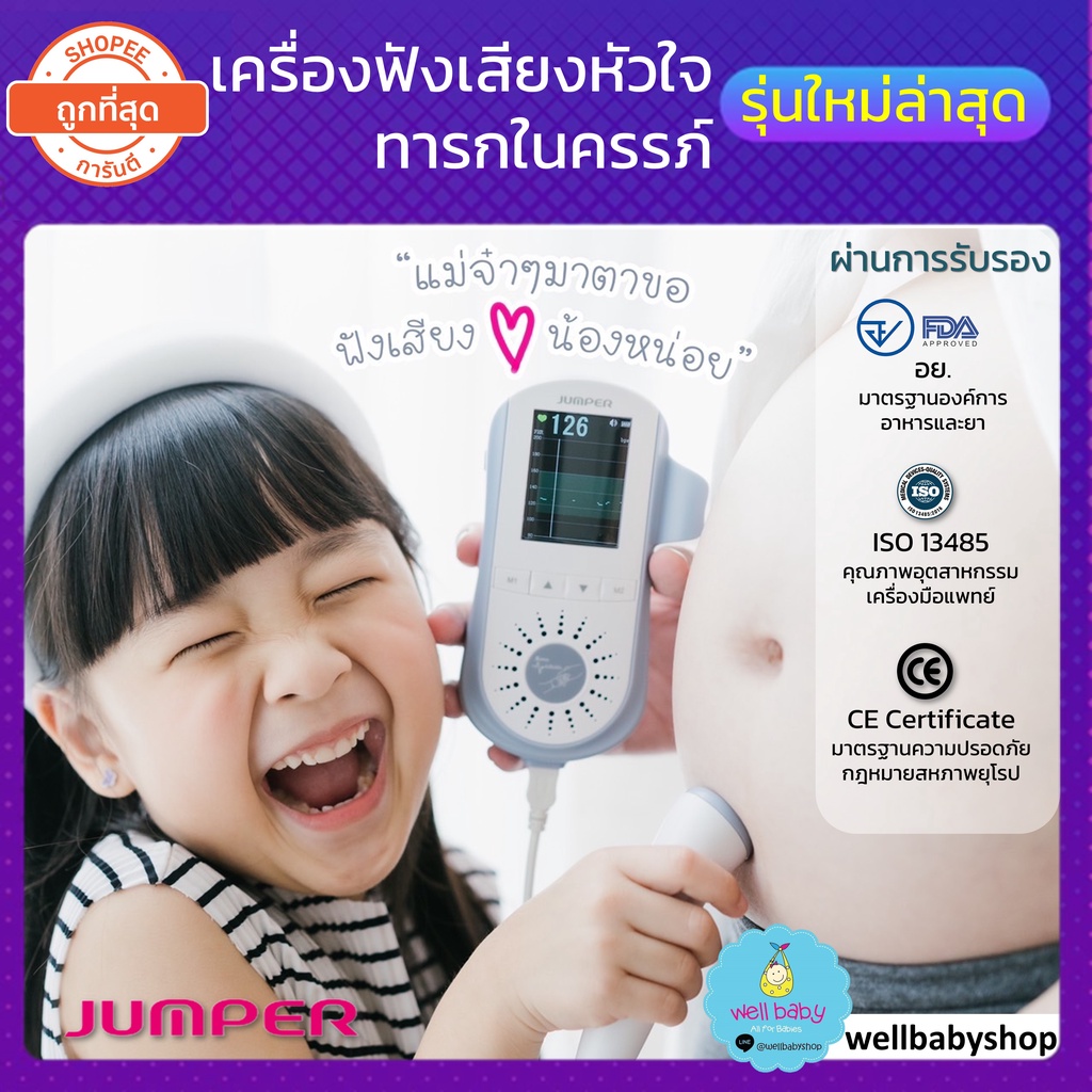 JUMPER รุ่น JPD 100E เครื่องฟังเสียงหัวใจทารกในครรภ์ แสดงผลแบบกราฟและตัวเลข ชาร์จได้