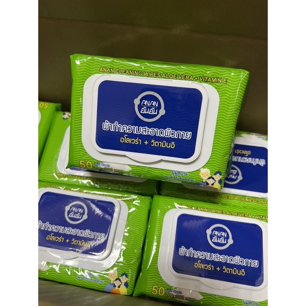 [ขายยกลัง] ANAN อันอันทิชชู่เปียกอะโลเวร่า 50แผ่นx18แพ็ค ผ้าเช็ดทำความสะอาดแผ่นใหญ่ #C8108