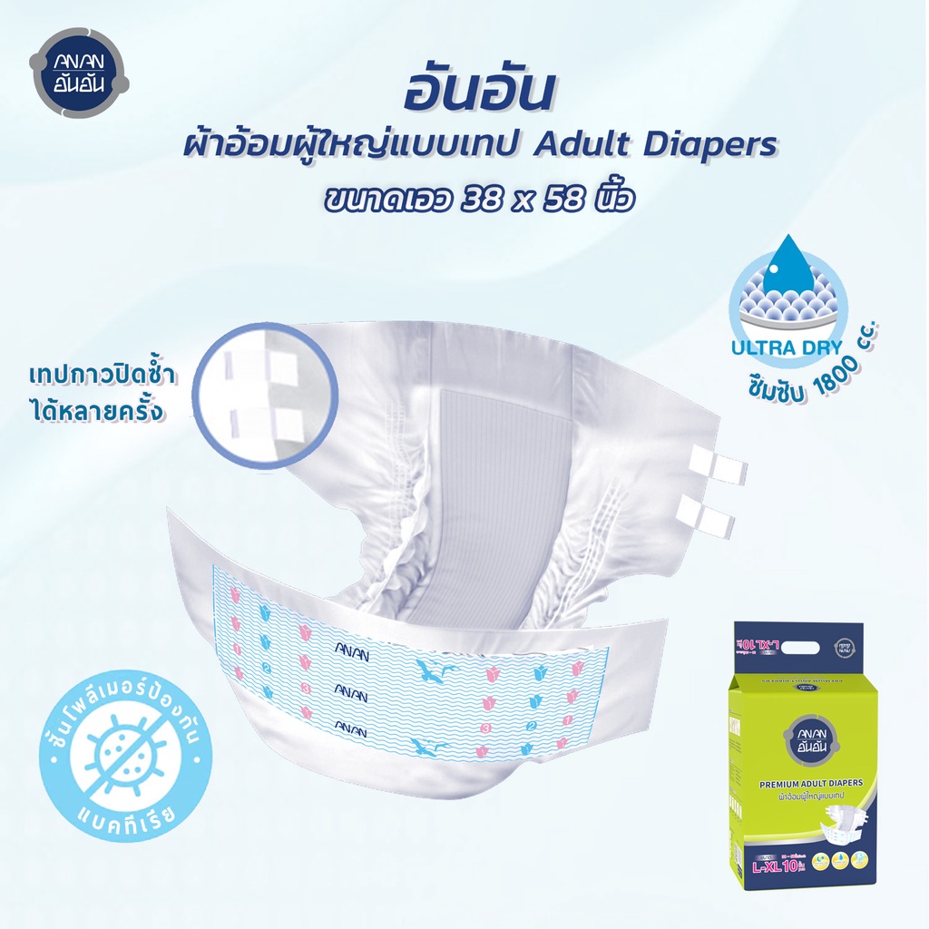 [ขายยกลัง] ANAN ผ้าอ้อมผู้ใหญ่อันอัน แบบเทป ไซส์ L-XL10 ชิ้น*8แพ็ค ซึมซับยาวนาน 2000CC #C901652