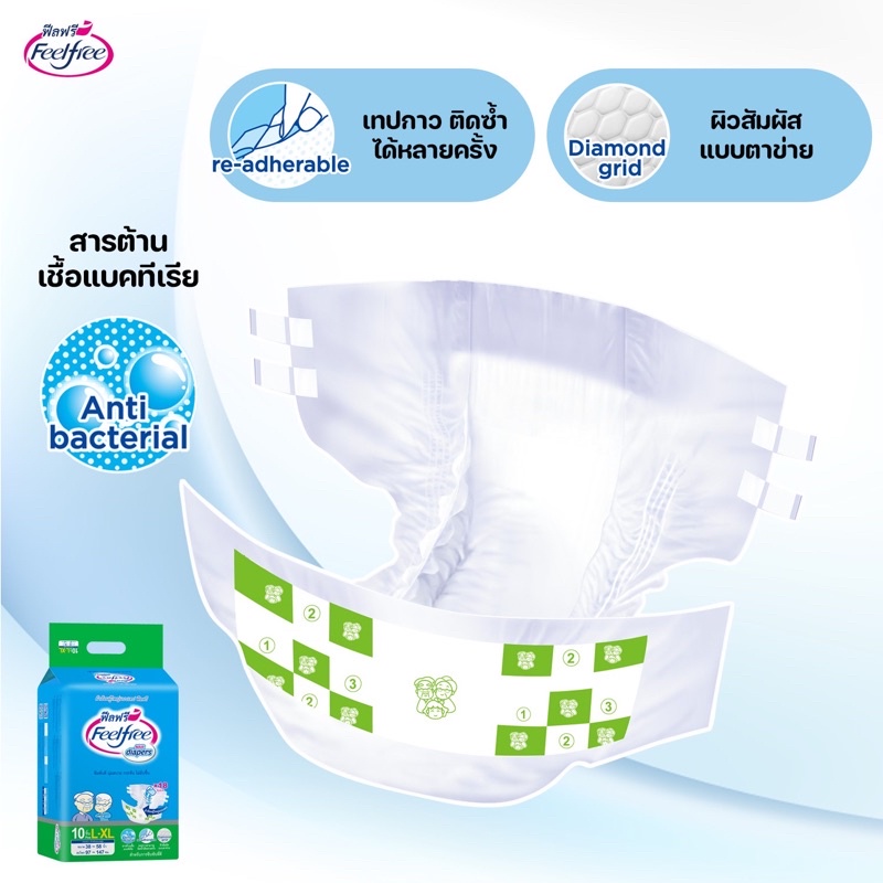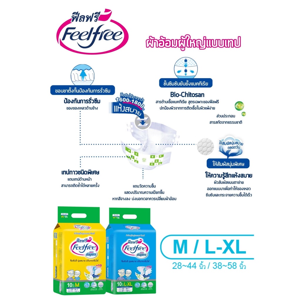 [ขายยกลัง] Feelfree ผ้าอ้อมผู้ใหญ่ฟีลฟรีแบบเทป ไซส์ L-XL10 ชิ้น*8แพ็ค ซึมซับมาก 1600CC #C921192