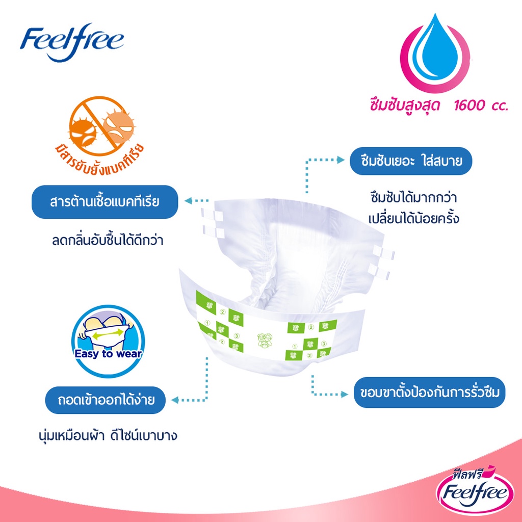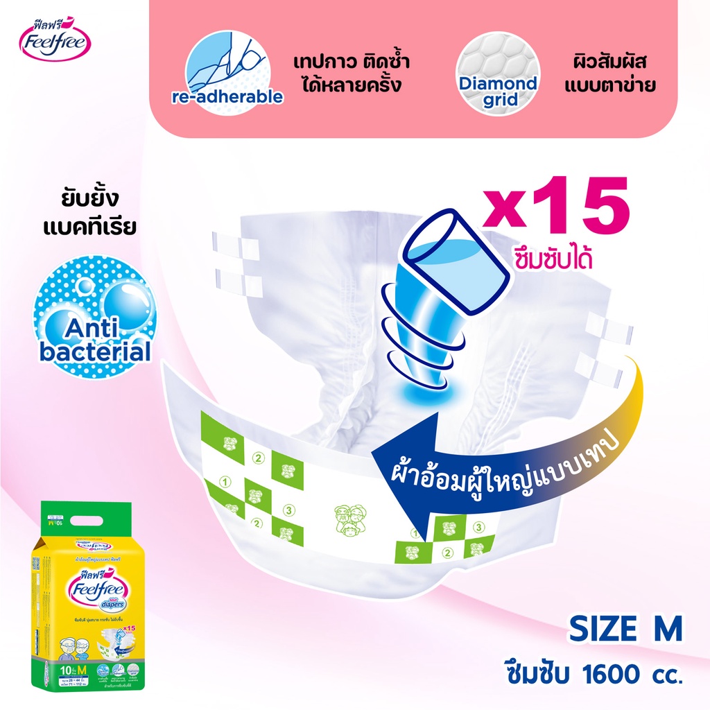 [ขายยกลัง] Feelfree ผ้าอ้อมผู้ใหญ่แบบเทปฟีลฟรี ไซส์ M10 ชิ้น*10 แพ็ค ซึมซับมากพิเศษ 1600CC #A921231