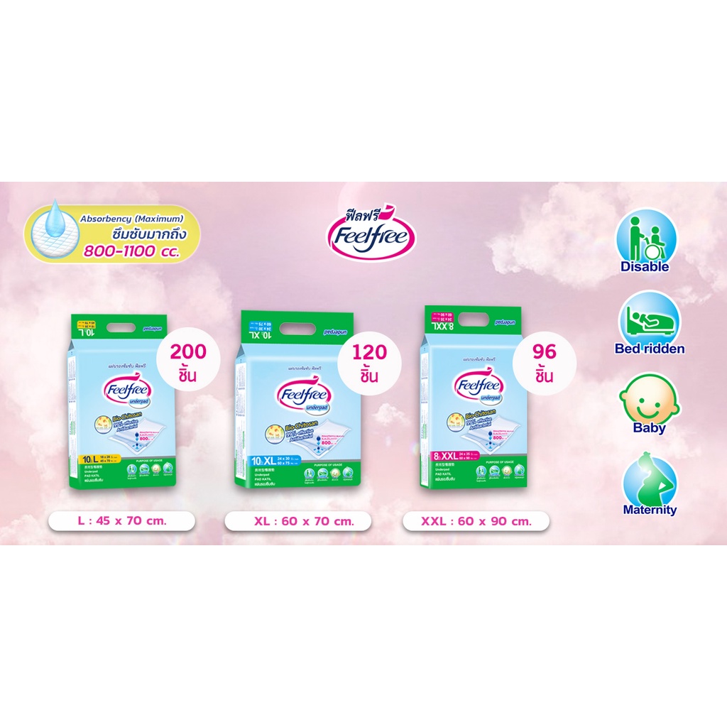 [ขายยกลัง] Feelfree แผ่นรองซับฟีลฟรี ไซส์ XL10ชิ้น*12 แพ็ค ซึมซับมาก 800CC #A923132