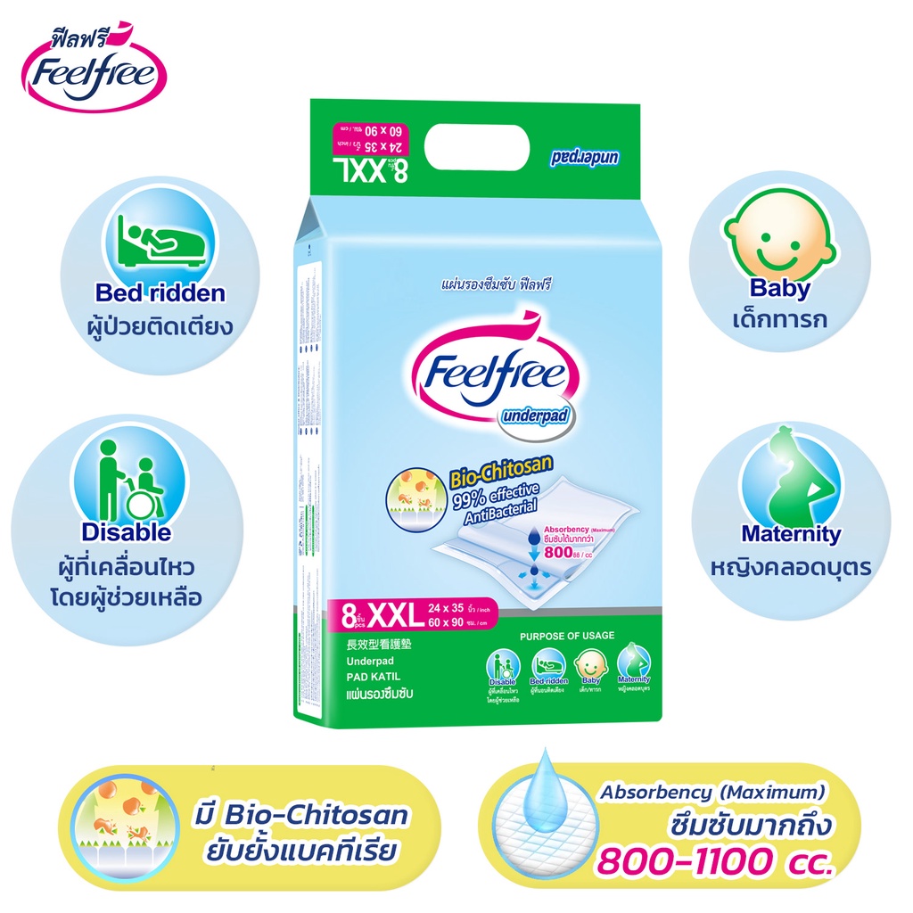 [ขายยกลัง] Feelfree แผ่นรองซับฟีลฟรี ไซส์ XXL 8ชิ้น*12แพ็ค 1100CC แผ่นรองฉี่ แผ่นรองปัสสาวะ #A923142