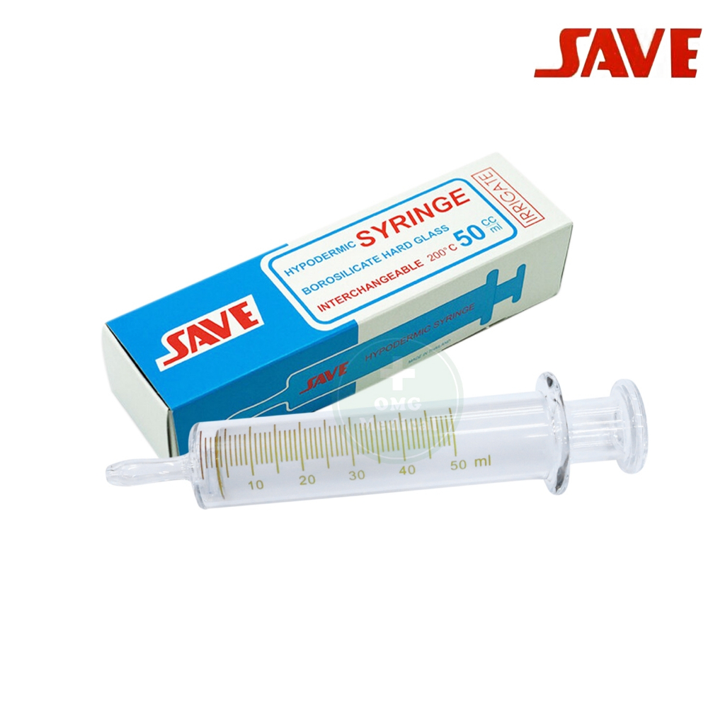 [ขายส่ง] ไซริงค์แก้ว 50 ml สำหรับให้อาหารผู้ป่วย Syringe ยี่ห้อ SAVE ขนาด กระบอกให้อาหาร ทนความร้อนได้ถึง 200 องศา