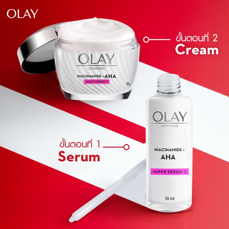 [คู่] OLAY Luminous Niacinamide AHA Super Serum เซรั่มหน้าใสลดฝ้าจุดด่างดำ 30 มล