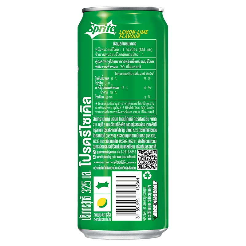 [จัดส่งทั่วประเทศ] สไปรท์ น้ำอัดลม 325 มล. 24 กระป๋อง Sprite Original 325ml Pack 24