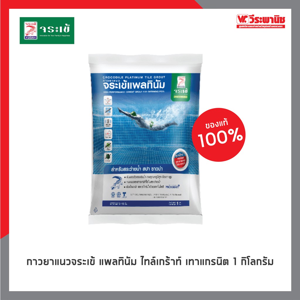 กาวยาแนว จระเข้ แพลทินัม 1 กก. | ยาแนวสระว่ายน้ำ ทนแรงดันน้ำ กันราดำ ตะไคร่ ยึดเกาะสูง