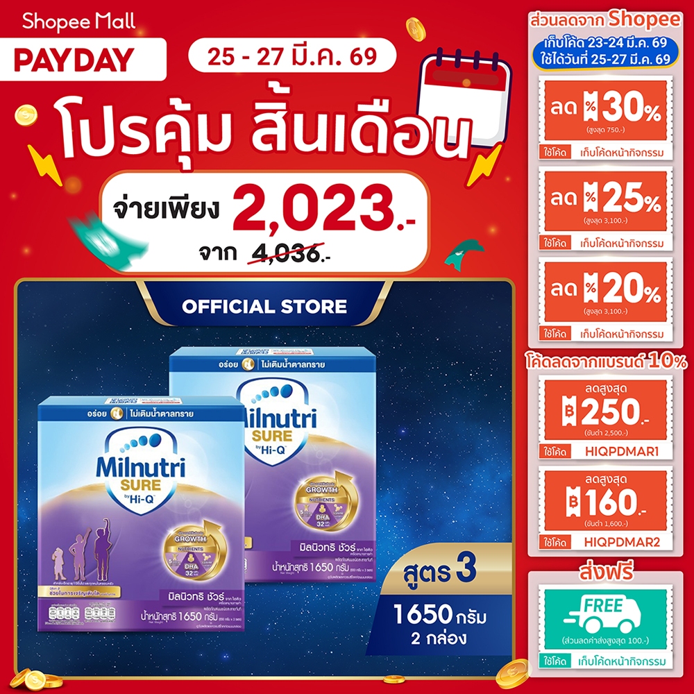 [นมผง x2] Milnutri Sure มิลนิวทริ ชัวร์ รสจืด 1650 กรัม x2 Milnutri Sure