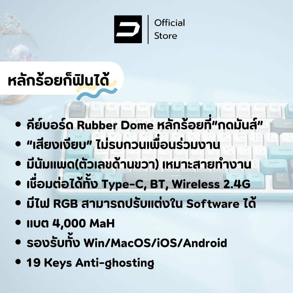 [ประกันศูนย์ไทย] DEKAY R98 Wireless Tri-Mode Rubber Dome Keyboard Bluetooth Wireless DKR98 DK R98 คีย์บอร์ดไร้สาย
