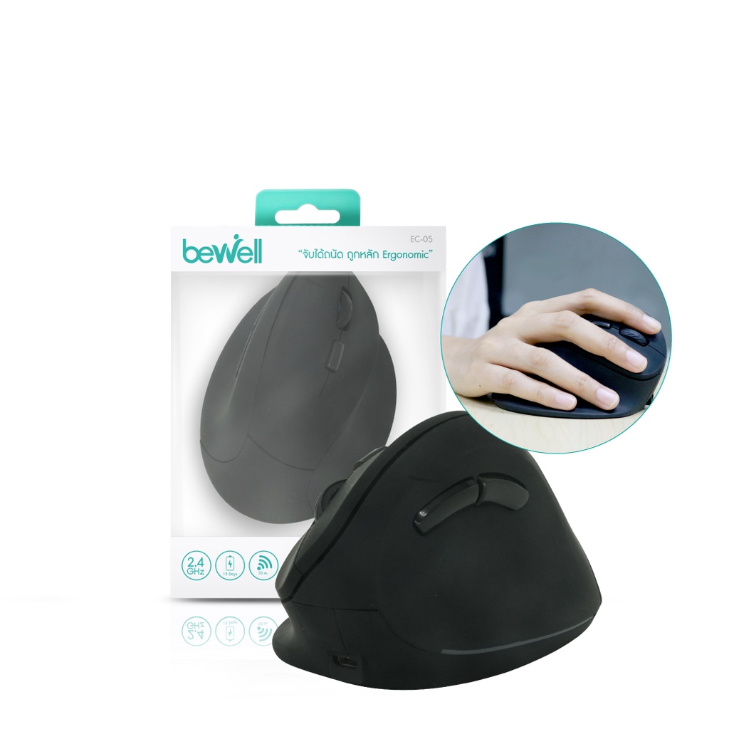 [ประกัน 1 ปี] Bewell เมาส์ไร้สายแนวตั้ง ลดการกดทับข้อมือ สบายมือทุกการคลิก ถูกต้องตามหลักสรีระ