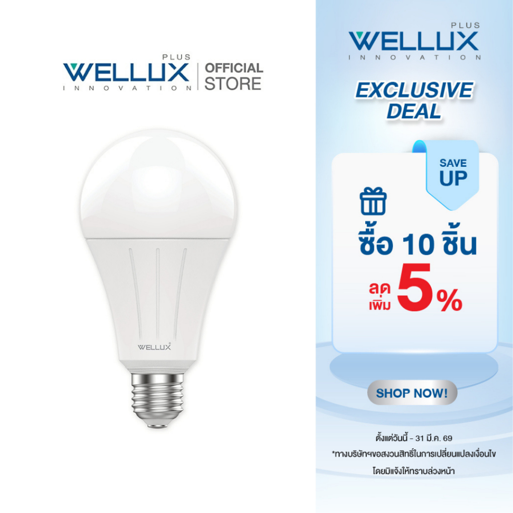 [รับประกัน1ปี]WELLUX หลอดไฟคุณภาพสูง 5W 7W 9W 12W 15W 23W แสงขาว แสงวอร์ม LED BULB ขั้วE27