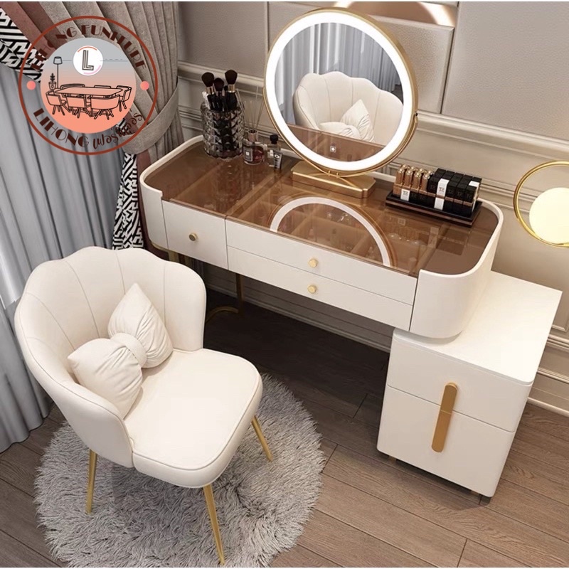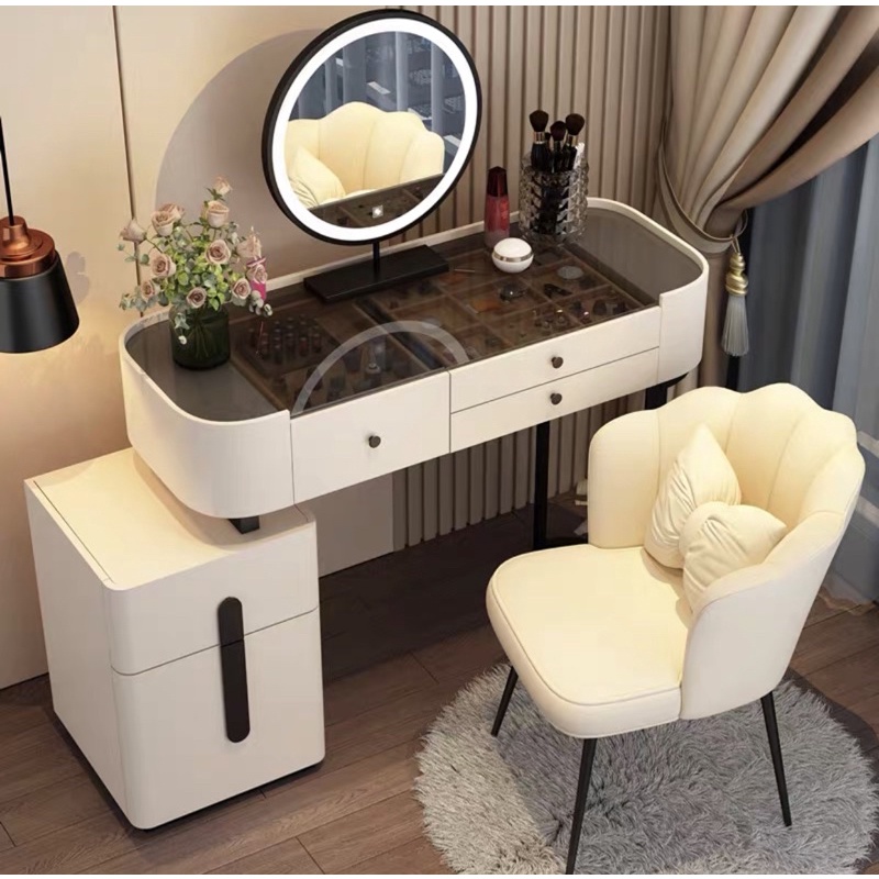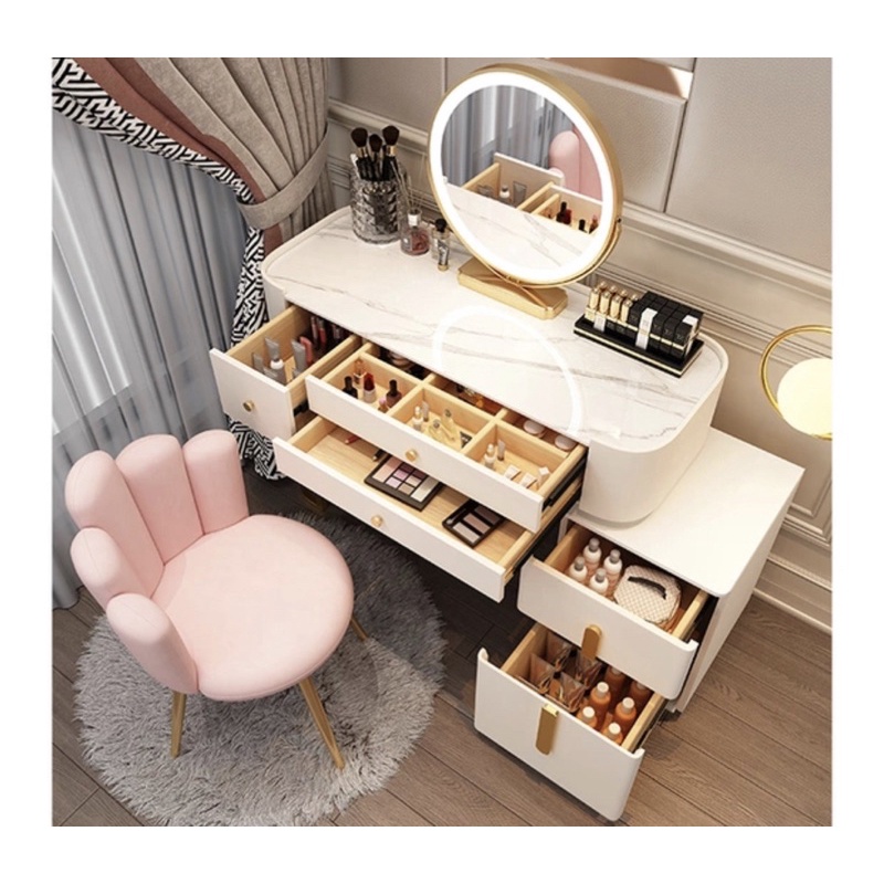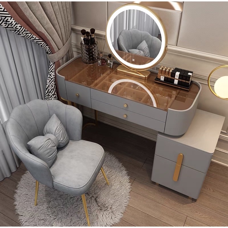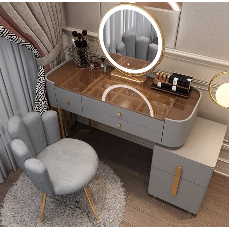 [ผ่อน0%นาน10เดือน] ND-003โต๊ะเครื่องแป้งหินอ่อนนอร์ดิก สไตล์โมเดิร์น รุ่นแบบกระจกสีชา/กระจกดำ/หินอ่อนขาว