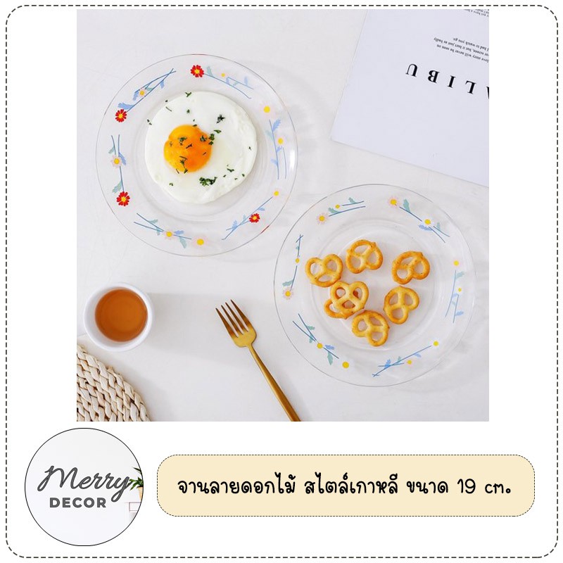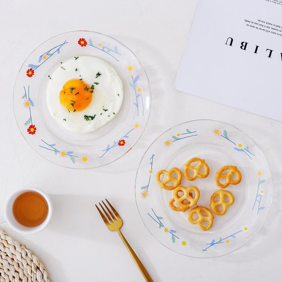 [พร้อมส่ง] จานลายดอกเดซี่ มินิมอล จานข้าว แก้ว อาหารเช้า ที่ใส่ขนม ลายน่ารักมาก มีให้เลือก 2 สี ขาว/แดง