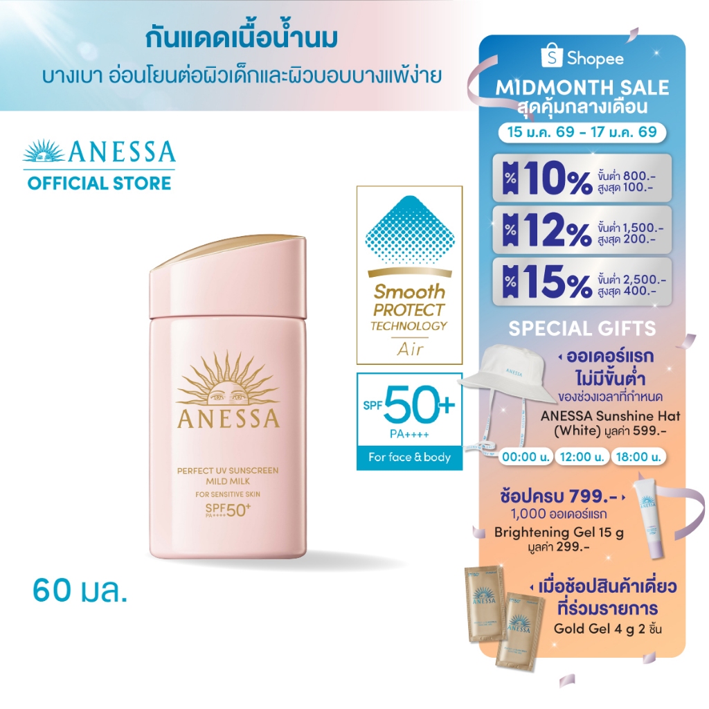 [พิเศษ 15-17 มค 69] ANESSA อเนสซ่า เพอร์เฟค ยูวี ซันสกรีน มายด์ มิลค์ NASPF50+PA++++ 60 มล.
