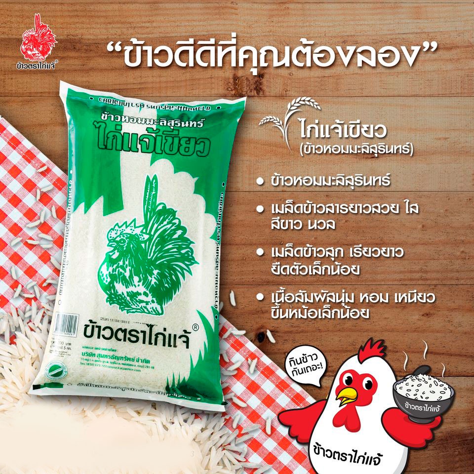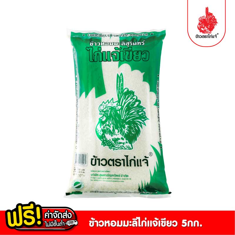 [ฟรีค่าจัดส่ง 10บาท] ข้าวตราไก่แจ้เขียว หอมมะลิสุรินทร์ 5 กิโลกรัม