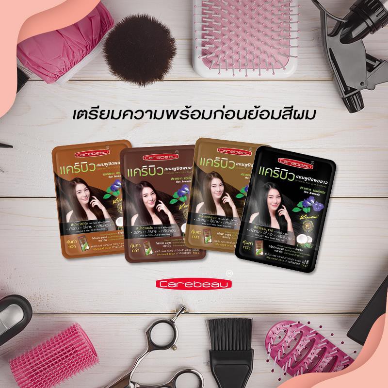 (ยกกล่อง 12 ชิ้น)แชมพูปิดผมขาว Carebeau แคร์บิว แฮร์ คัลเลอร์ แชมพู แชมพูปิดผมหงอก เปลี่ยนสีผม กลิ่นหอม+แถมทรีทเมนท์
