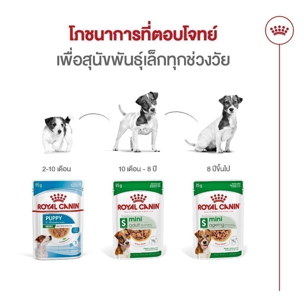 [12 ซอง] Royal Canin Mini Adult Pouch Gravy อาหารเปียกสุนัขโต พันธุ์เล็ก อายุ 10 เดือน-8 ปี (Wet Dog Food, โรยัล คานิน)