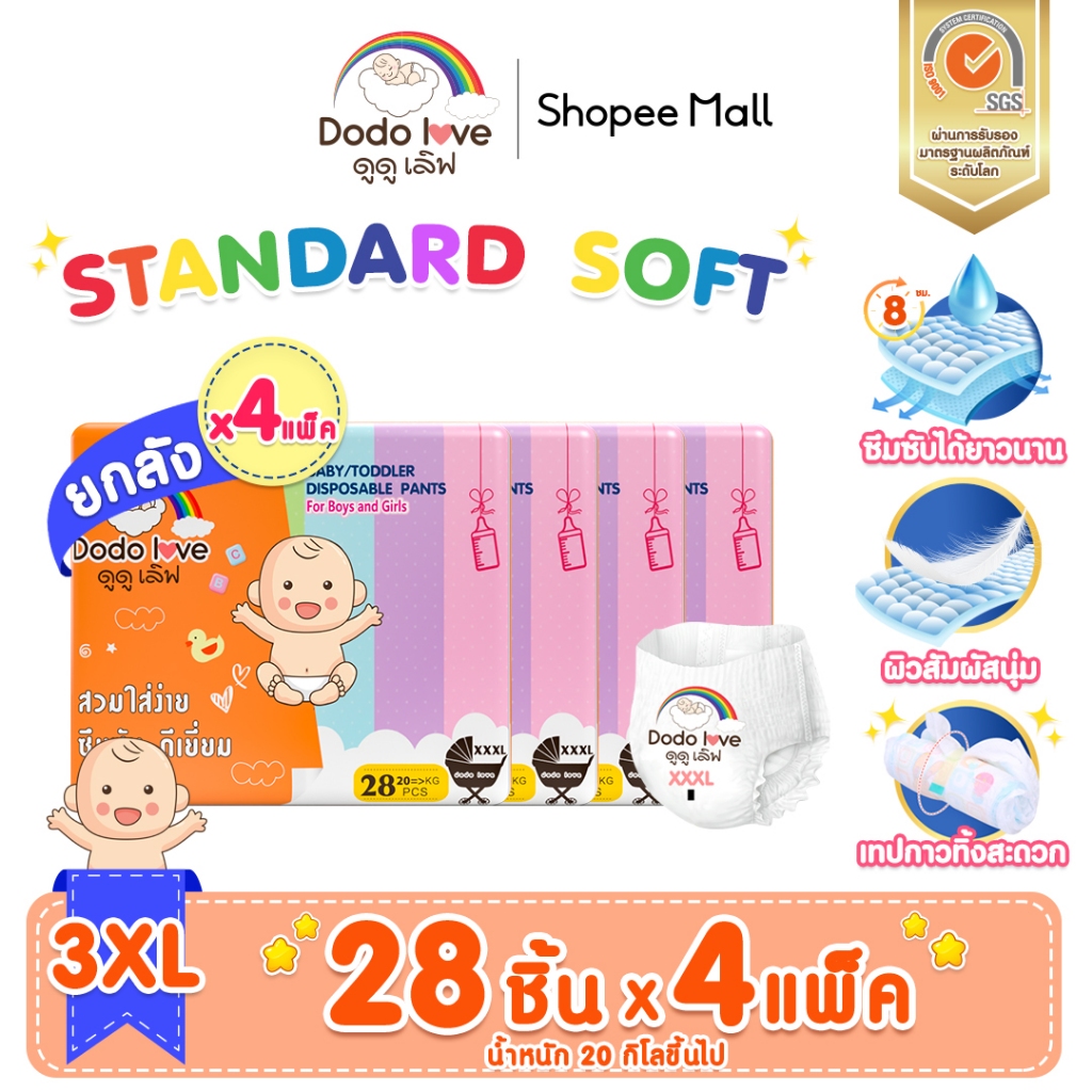 ยกลัง 4แพ็ค DODOLOVE Standard Soft ผ้าอ้อมเด็ก กางเกงผ้าอ้อม ผ้าอ้อม Size NB-4XL นุ่ม บางเบา ใส่สบาย