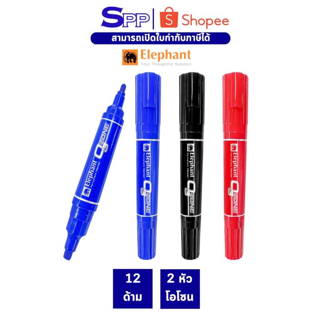 ปากกาเคมี 2 หัว โอโซน ตราช้าง จำนวน 12 ด้าม [ยกโหล 12 ด้าม]