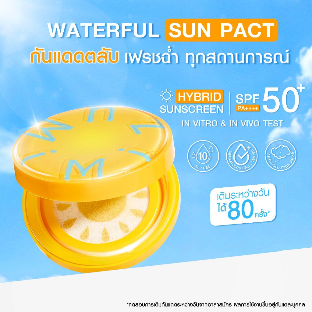 [ราคาพิเศษ]MizuMi Waterful Sun Pact SPF50+PA++++10g กันแดดตลับ เติมระหว่างวัน บางเบา เย็นสบาย เฟชรผิวฉ่ำน้ำ ไม่กวนเมคอัพ