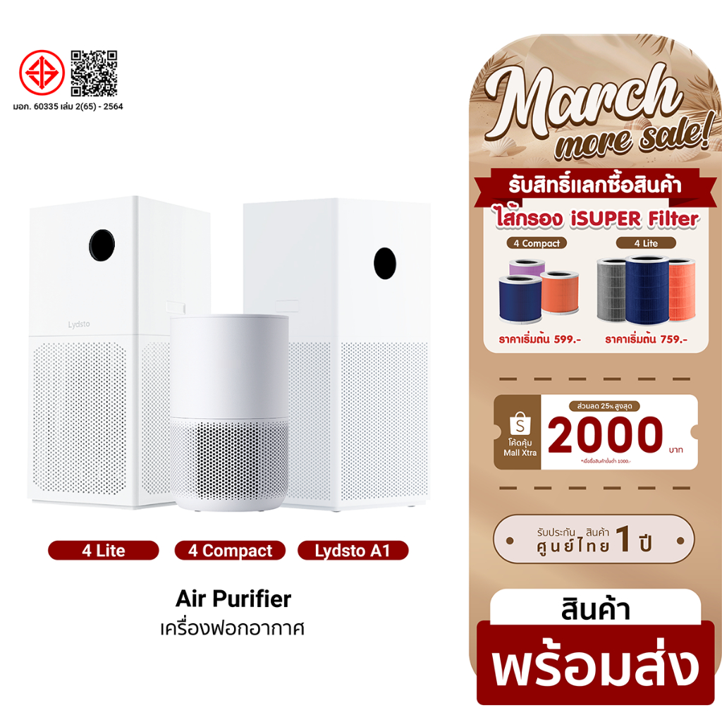 (รับประกันศูนย์ไทย) Xiaomi Mi Smart Air Purifier 6 / 4 Lite / 4 / 4 Pro / 4 Compact / Elite / Lydsto A1 เครื่องฟอกอากาศ