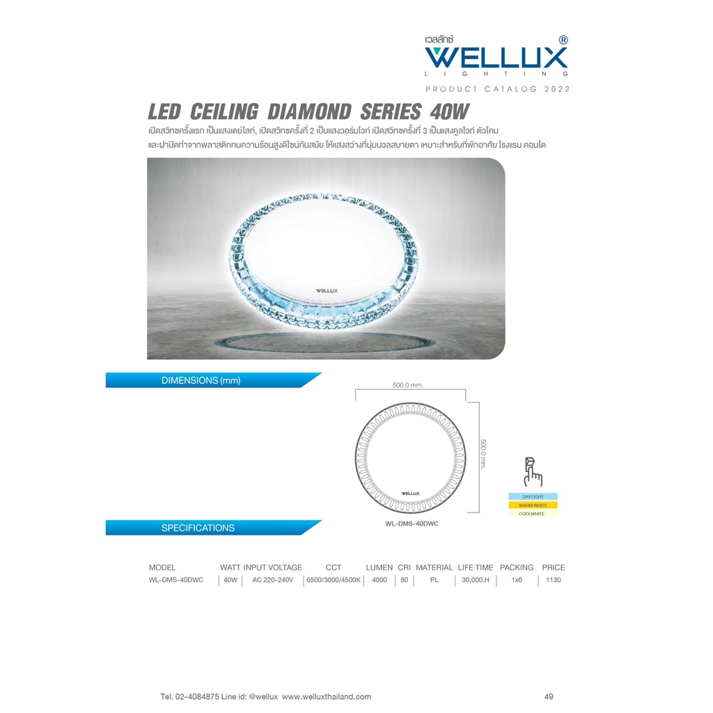 WELLUX โคมไฟเพดานติดลอย 3 แสง 40W LED CEILING LAMP 3 STEP รุ่น DIMOND SERIES