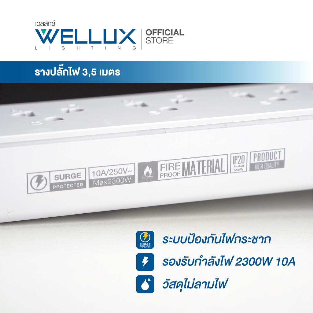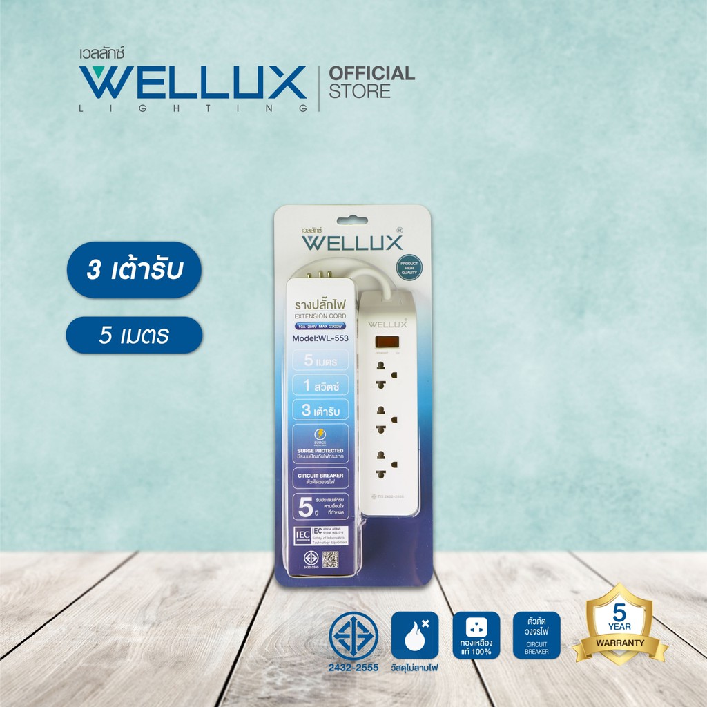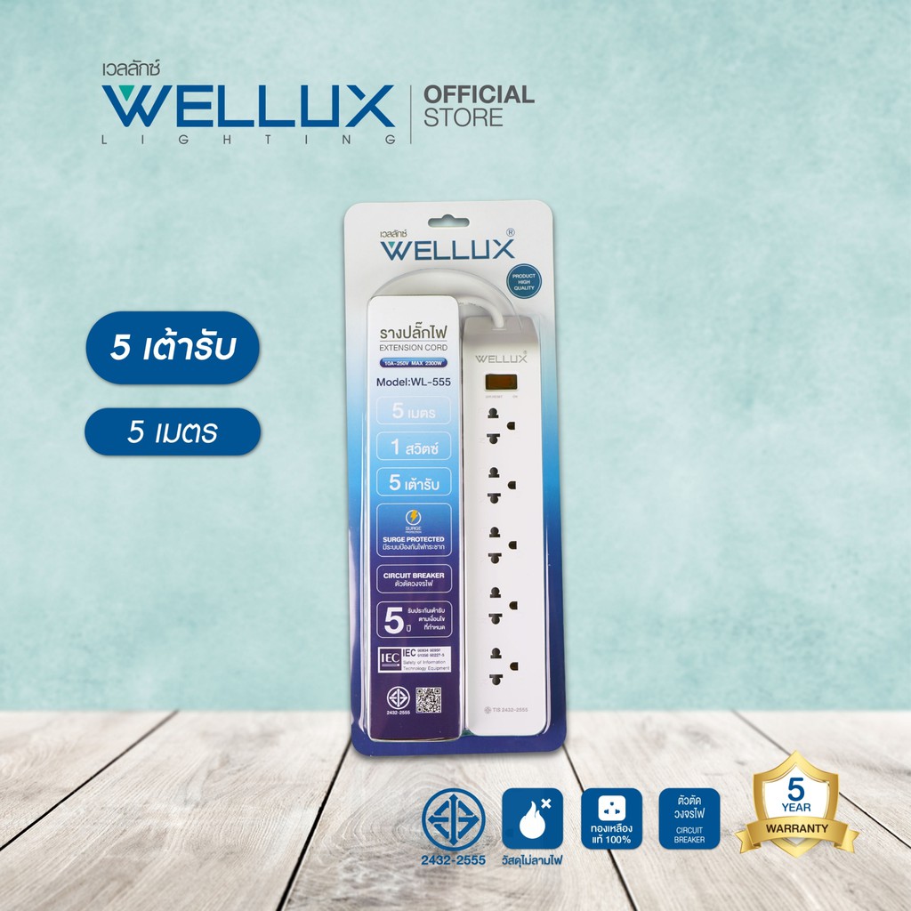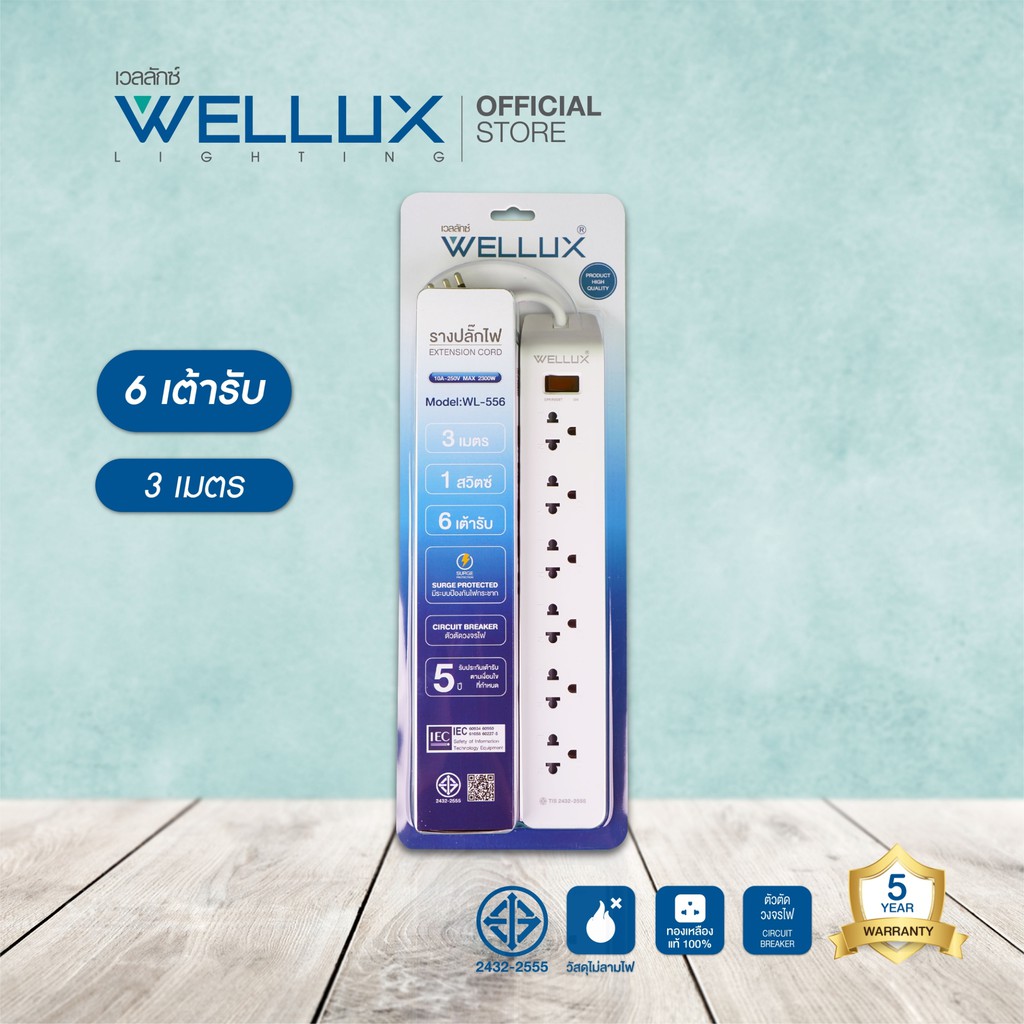 [รุ่น55]WELLUX ปลั๊กไฟคุณภาพ 3,4,5,6 ช่อง ความยาวสายไฟ 3M 5M รองรับกำลังไฟ 2300W เต้ารับทองเหลือง วัสดุไม่ลามไฟ มอก.2433