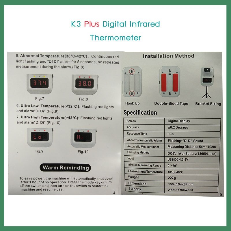 [ลดล้างสต๊อก‼️] K3 Plus สินค้าประกัน 3 เดือน (เครื่องแท้) Infrared Thermometer ที่วัดไข้ติดผนัง สแกนมือวัดไข้