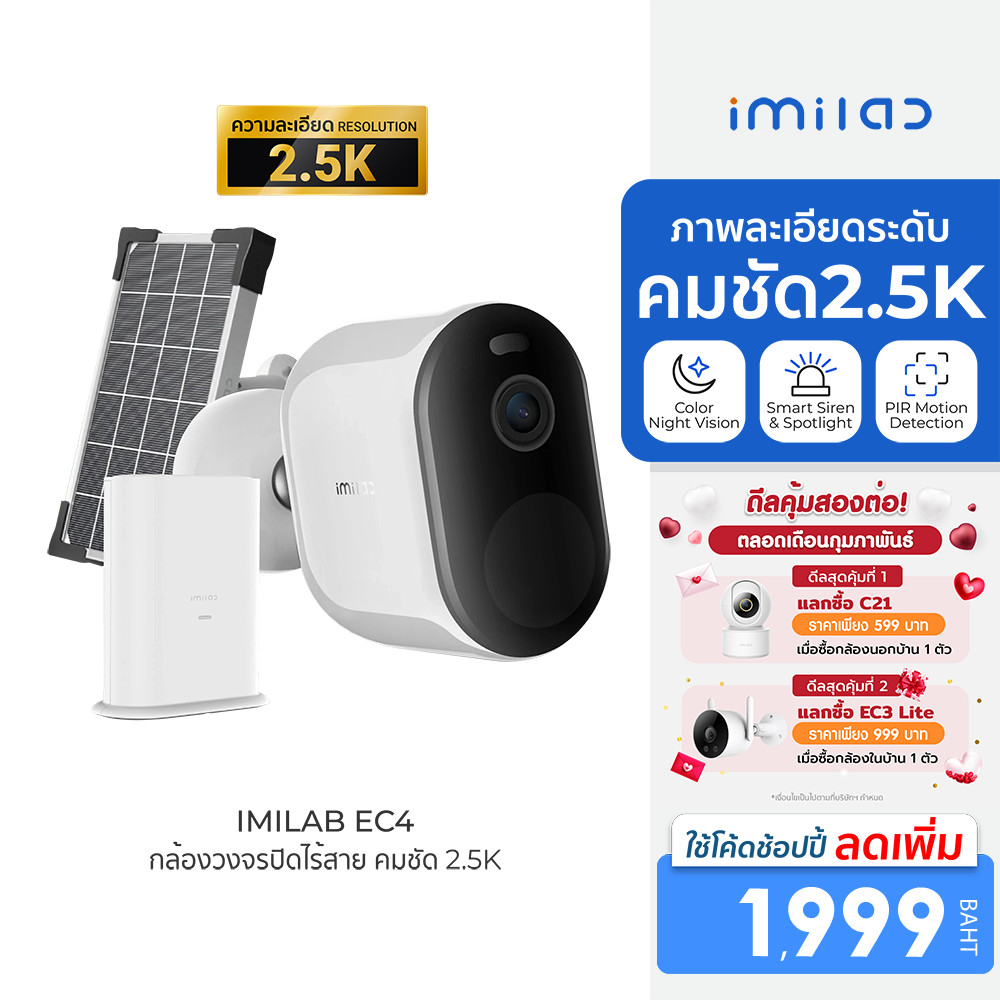 [ลดเหลือ 1999] IMILAB EC4 (GB V.) กล้องวงจรปิดไร้สาย คมชัด 2.5K 4MP แสดงภาพสีกลางคืน ประกันศูนย์ไทย -1Y