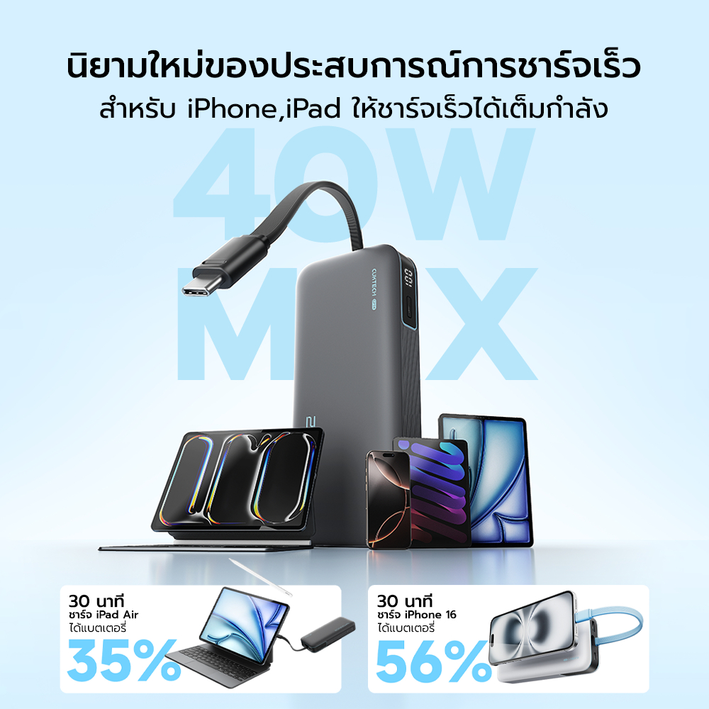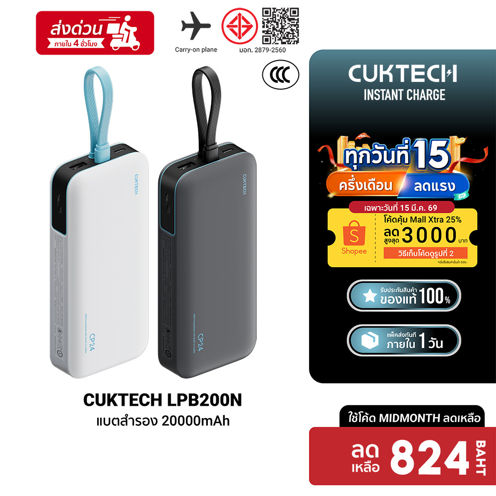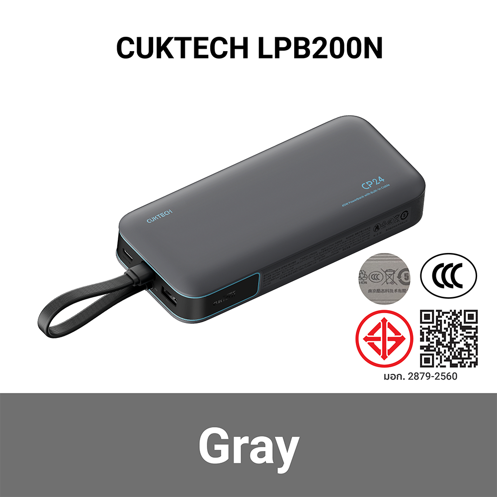 [ลดเหลือ 824] CUKTECH LPB200N แบตสำรอง ชาร์จเร็ว 20000 mAh มาตรฐาน CE / CCC USB-C 40W และ USB-A 33W -1Y