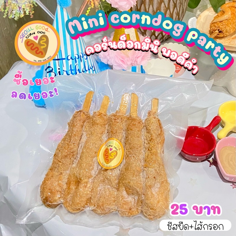 [ลูกค้าใหม่1บาท] 🎈(*mini corndog party*)🎈 **ราคา25ต่อไม้** ถูกมาก! คอร์นดอกมินิปาร์ตี้ ชีสยืด+ไส้กรอกไก่หนังกรอบ
