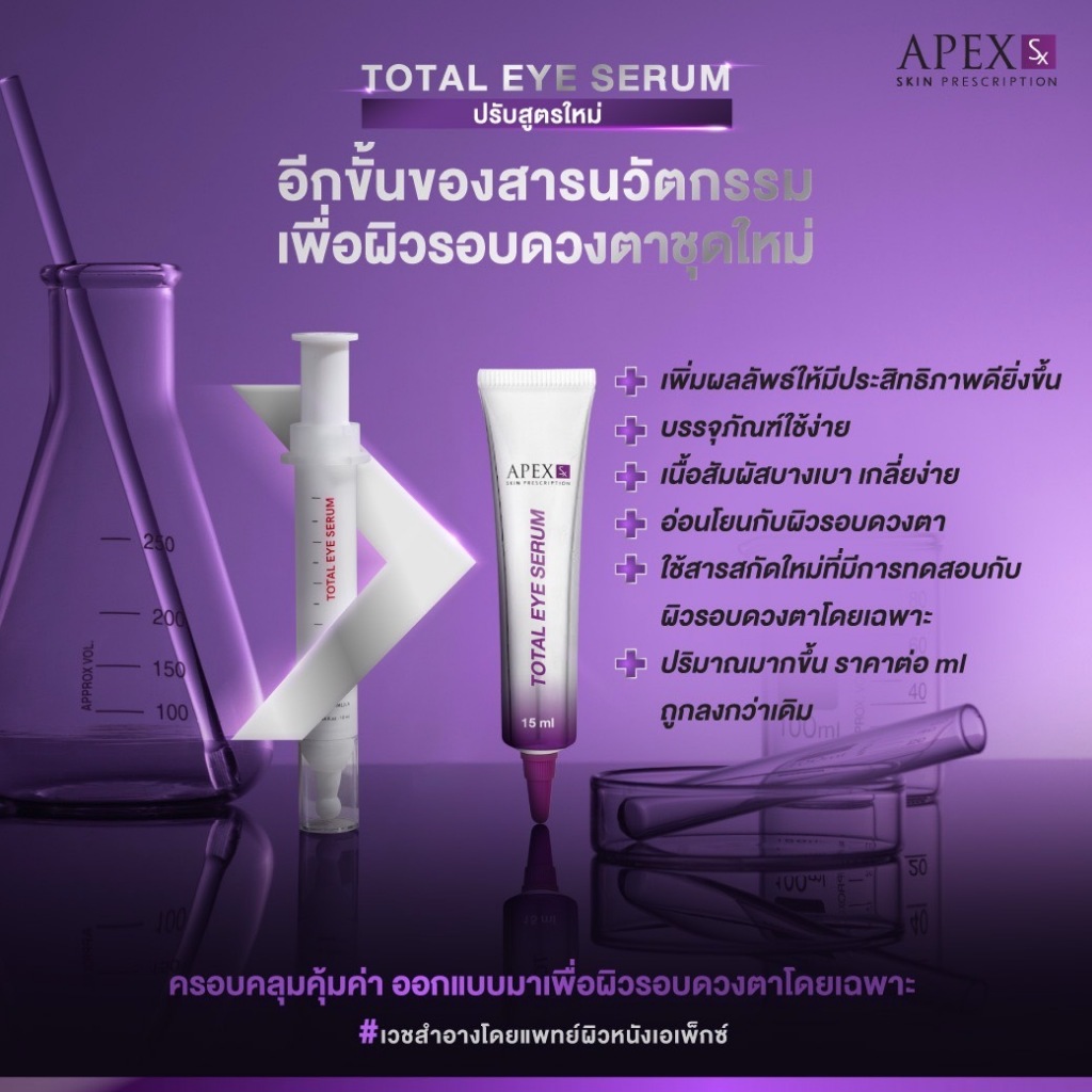 APEX-SX TOTAL EYE SERUM สูตรใหม่!! เซรั่มฟื้นบำรุงผิวรอบดวงตา ดูแลครบจบปัญหาผิวรอบดวงตา 15 ml.