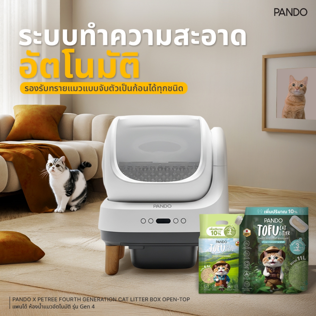 [ FREE Gift set 10-17 เม.ย ] PANDO Four Generation Cat Litter Box Open-top ห้องน้ำแมวอัตโนมัติ รุ่น 4