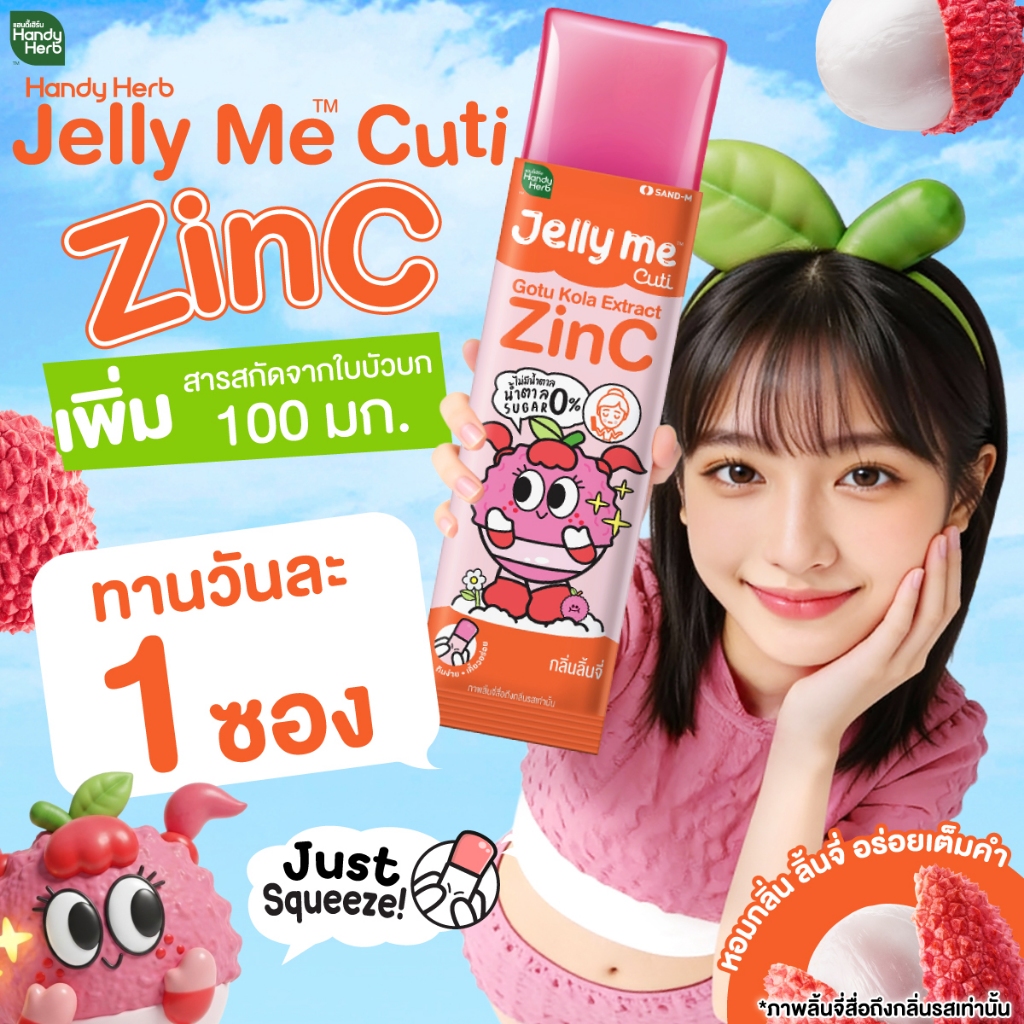[สูตรใหม่] HandyHerb Jelly Me Cuti Zinc สารสกัดจากใบบัวบก เเละซิงค์ กลิ่นลิ้นจี่ 1 กล่อง (12 ซอง)