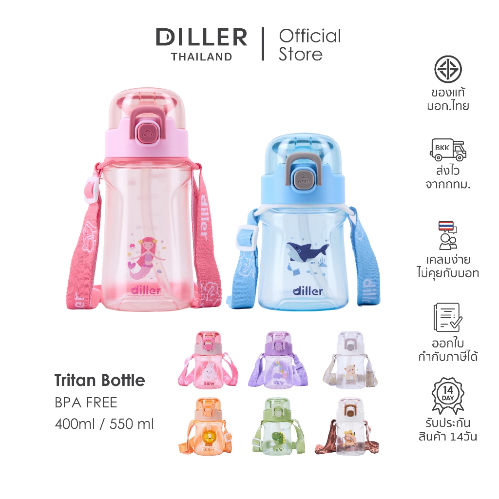 (พร้อมส่งจากไทย) Diller Tritan Flask 400/550ml กระติกน้ำสำหรับเด็ก ปลอดภัยปราศจาก BPA และ Phthalates (DB007 / D2561)