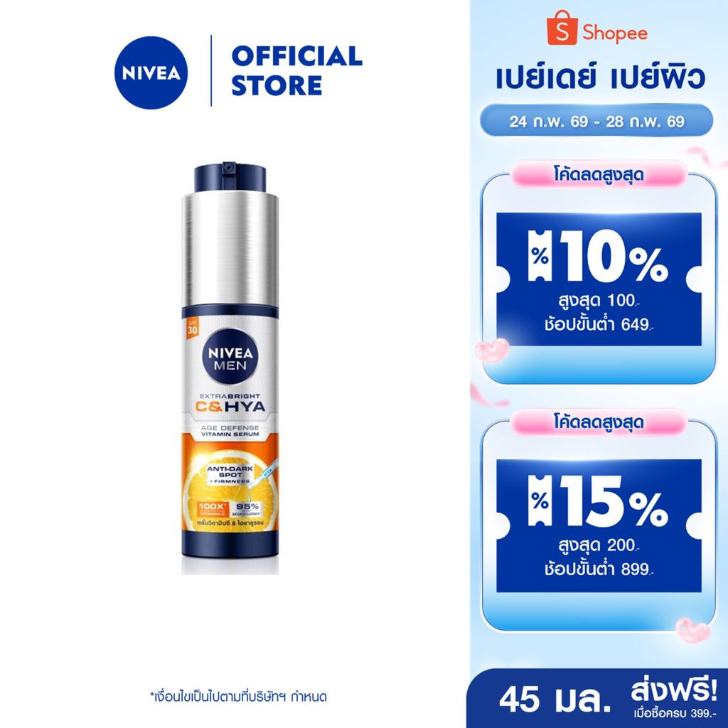 นีเวีย เมน เอ็กซ์ตร้า ไบรท์ ซี แอนด์ ไฮยา เอจ ดีเฟนซ์ วิตามิน เซรั่ม เอสพีเอฟ30 45 มล. NIVEA