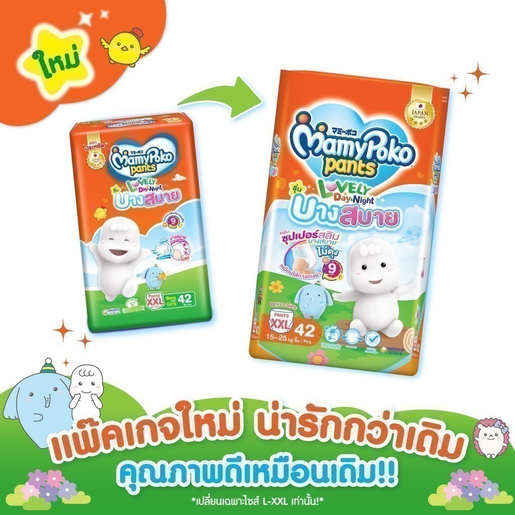 MamyPoko มามี่โพโค กางเกงผ้ าอ้อมเด็ก เลิฟลี่เดย์แอนด์ไนท์ บางสบาย ไซส์ S-XXXL x3 แพ็ค ขายยกลัง