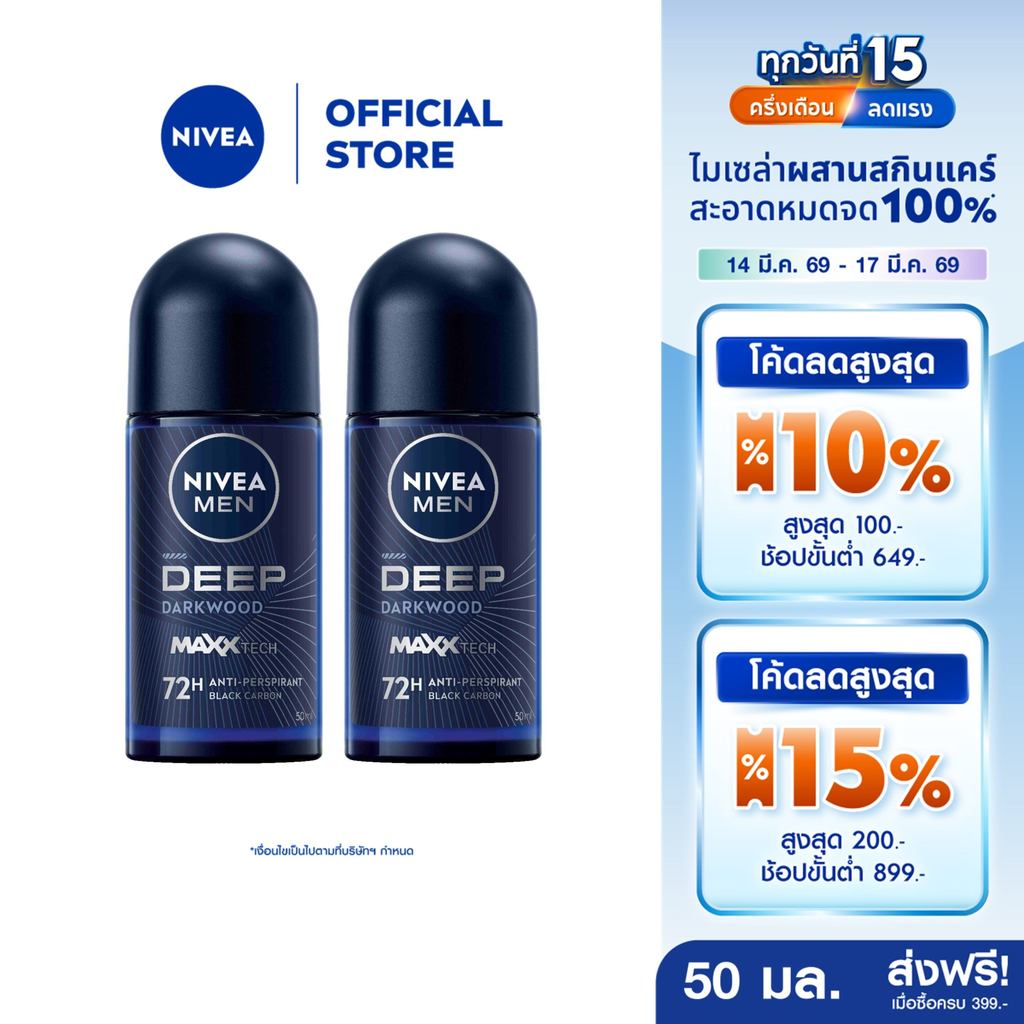 นีเวีย เมน ดีพ ดาร์กวูด โรลออน 50 มล. 2ชิ้น NIVEA