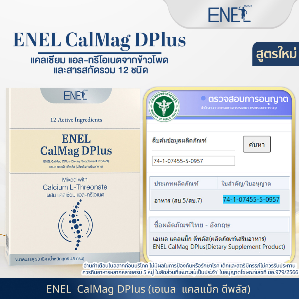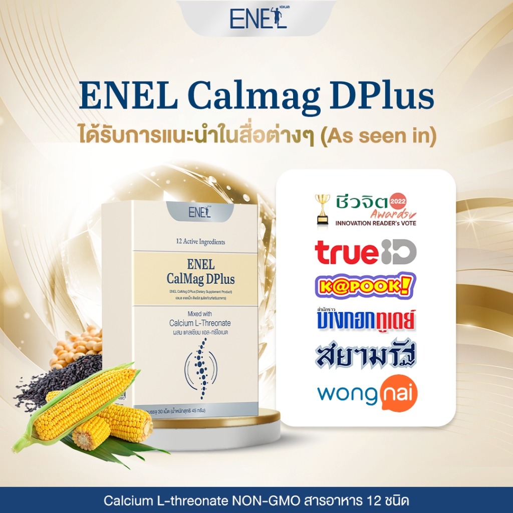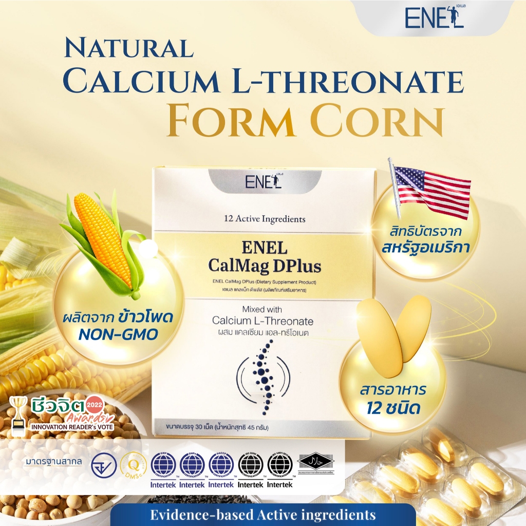 [ส่งฟรี]ENEL Calmag DPlus (เอเนล แคลแม็ก ดีพลัส) แคลเซียมแอลทรีโอเนต ข้าวโพดNON-GMO 1 กล่อง 30 เม็ด