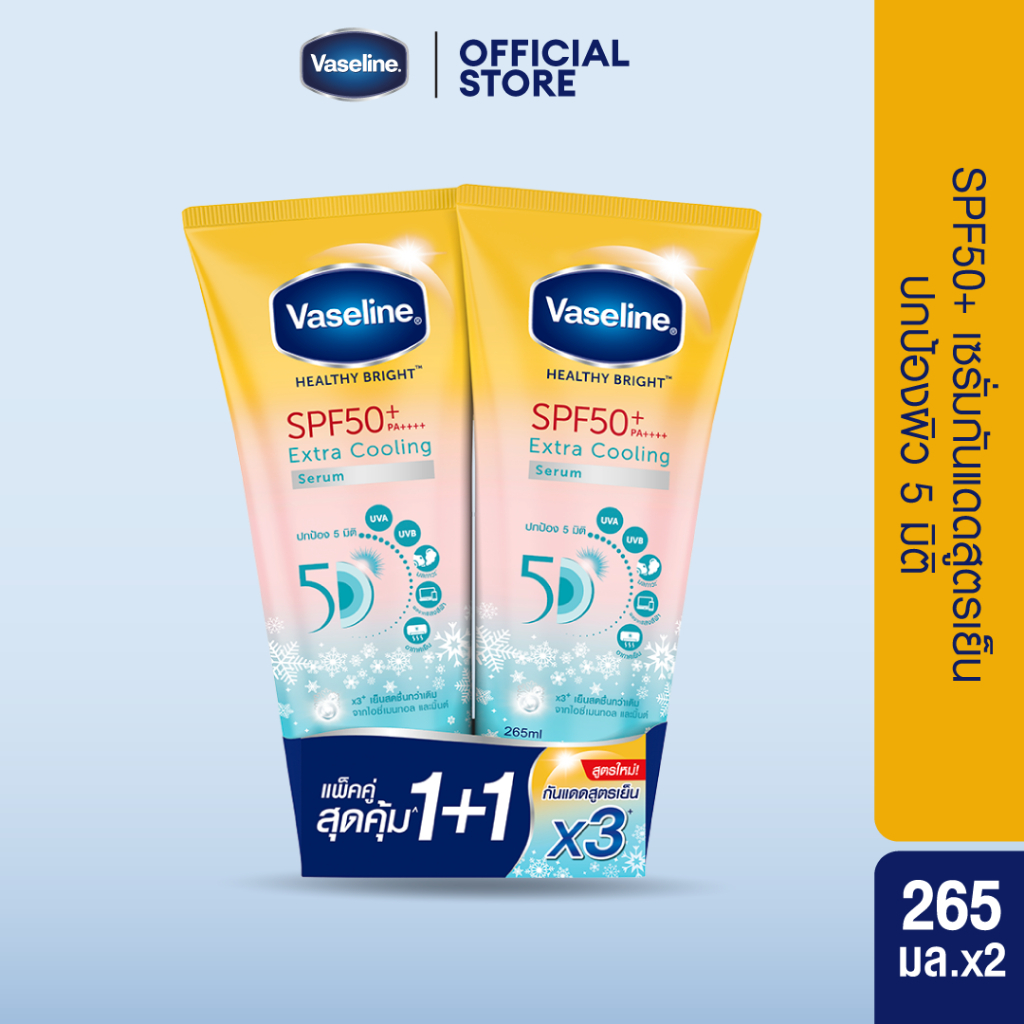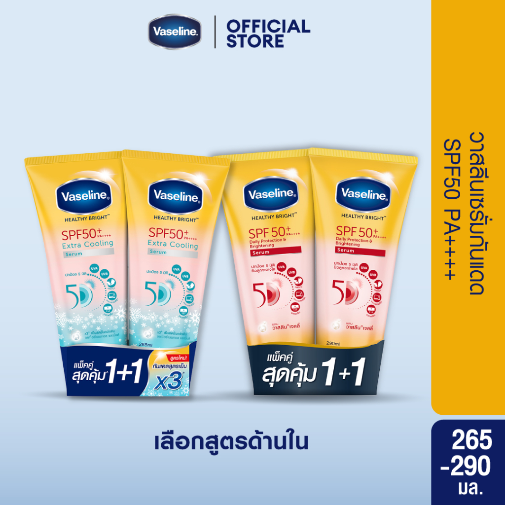 วาสลีน เฮลธี ไบรท์ เซรั่มกันแดด ซันแอนด์โพลูชั่น โพรเทคชั่น SPF50+ PA+++ ปกป้องมลภาวะ 265-290 มล.Vaseline Healthy Bright