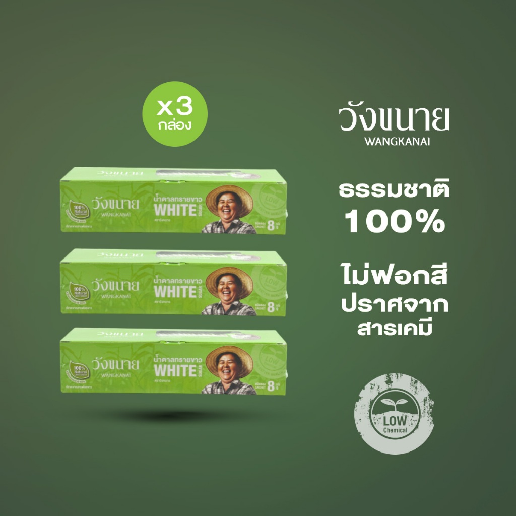 Wangkanai : น้ำตาลทรายขาว ชนิดซอง 8 กรัม x 40 ซอง/กล่อง [x3 กล่อง](30608)