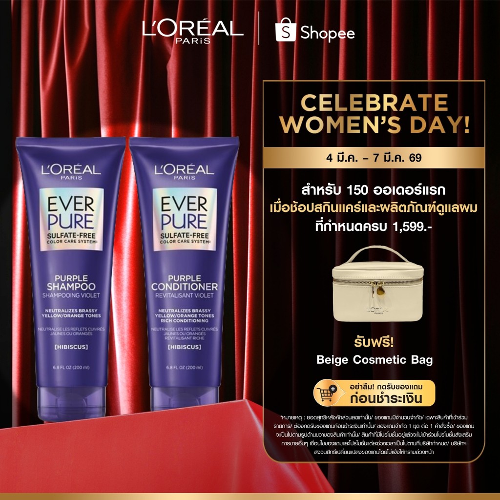 ลอรีอัล ปารีส L'Oréal Paris EverPure Sulfate-Free Purple Shampoo Conditioner 200ml แชมพูม ่วงและคอนดิชั่นเนอร์