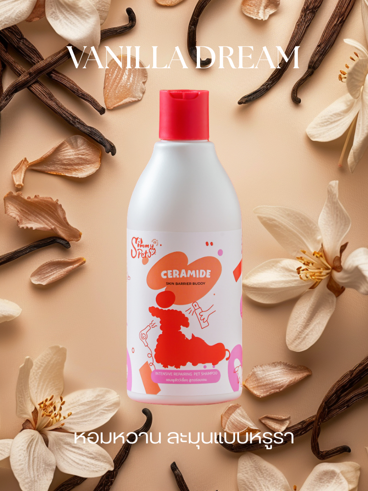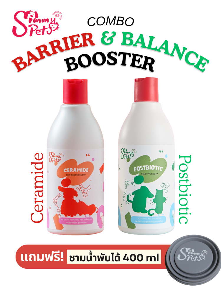 [แถมชามน้ำ] Simmy Pets เซตสุดคุ้ม แชมพูสุนัข แมว 460ml Ceramide + Postbiotic ลดขนร่วง/อ่อนโยน/แพ้ง่าย อาบสะอาด