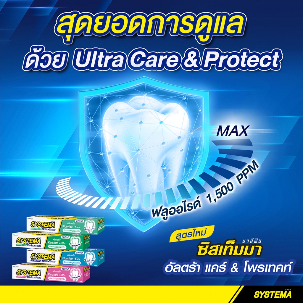 [แพ็คคู่] Systema ยาสีฟัน ซิสเท็มมา Care & Protect Maxi Cool แม็กซี่ คูล 140 กรัม 2 หลอด