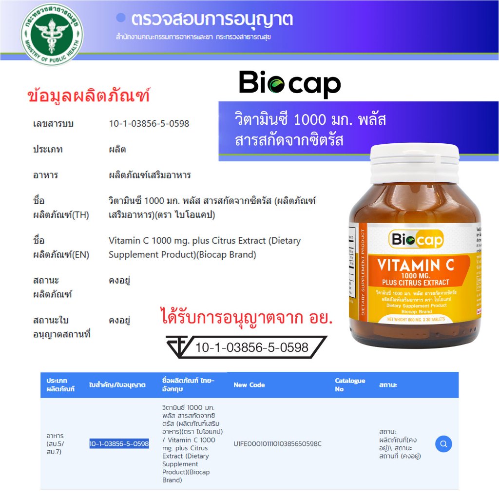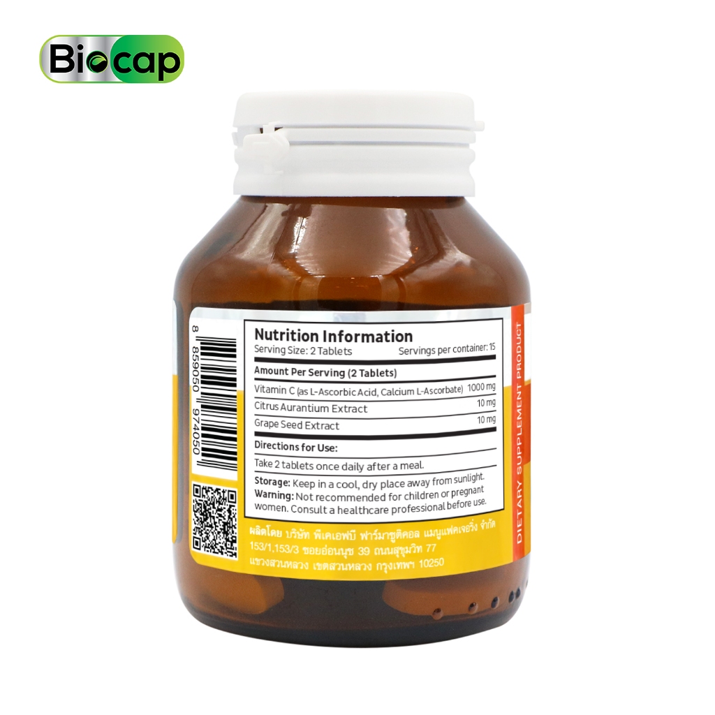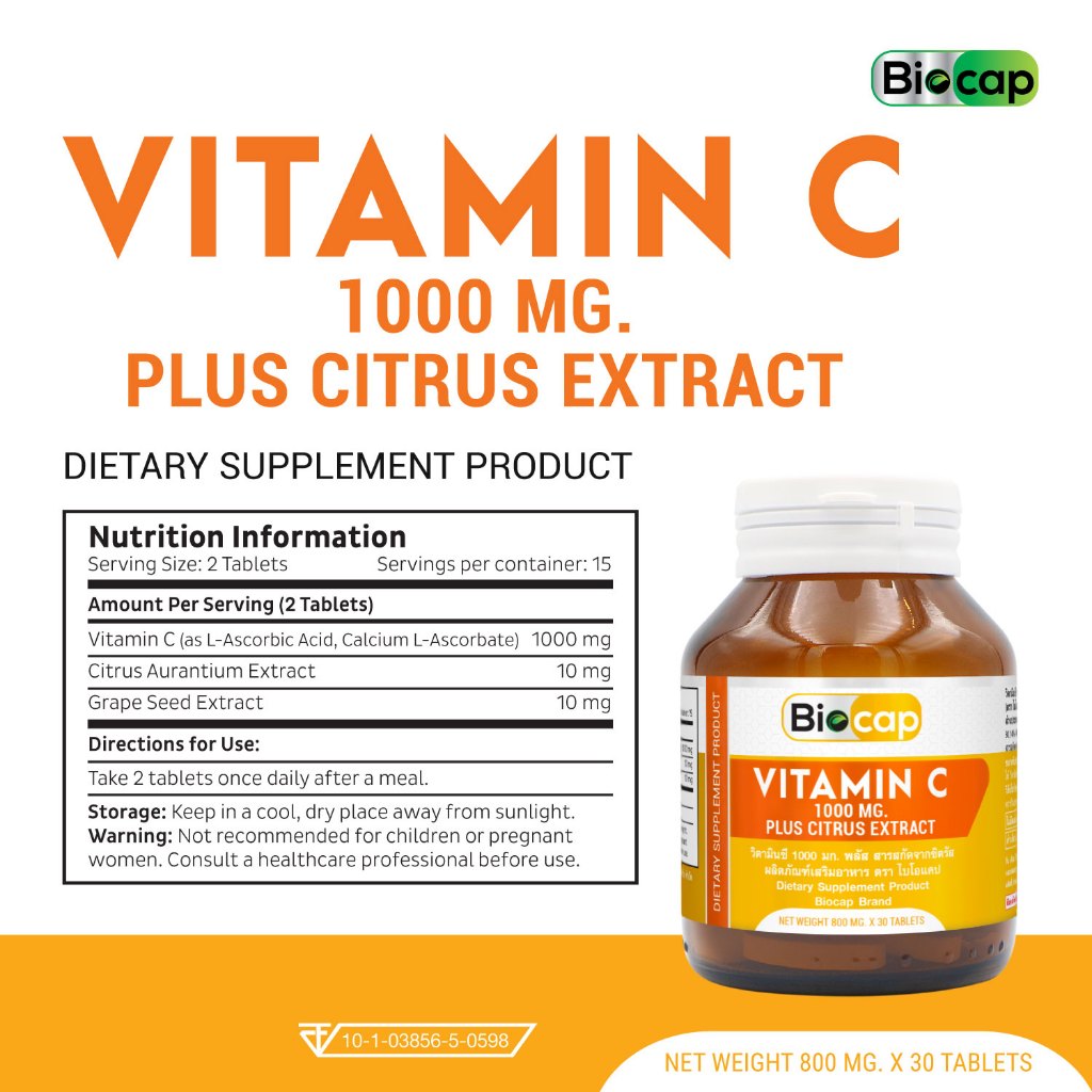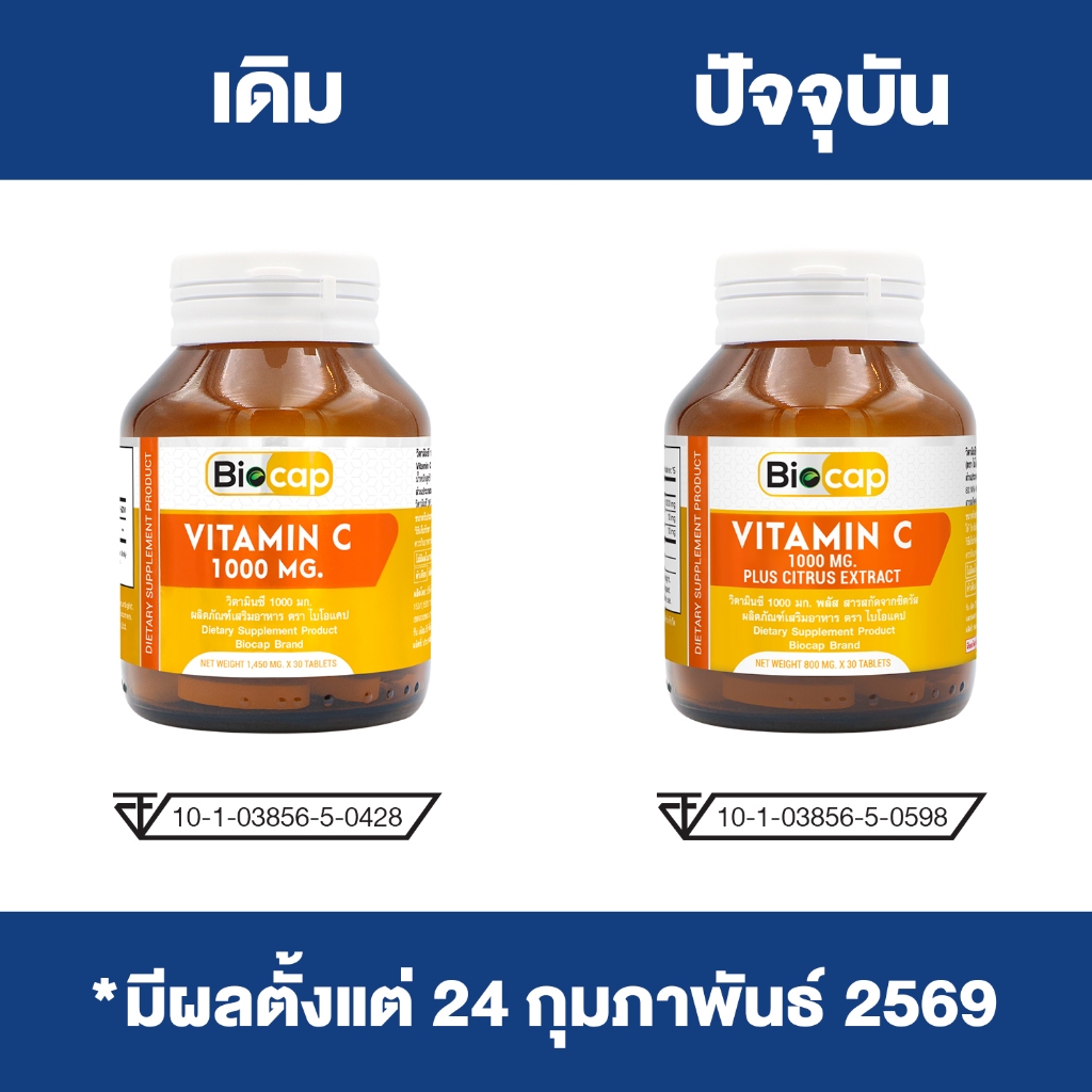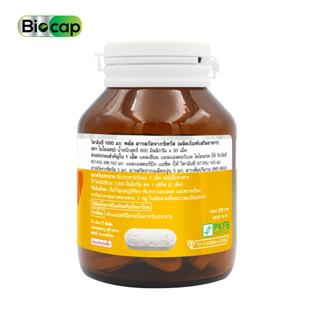 [แพ็ค 3 ขวด] วิตามินซี 1000 มก. ไบโอแคป Vitamin C 1000 mg. plus Citrus Extract Biocap วิตามินซี1000 วิตซี1000